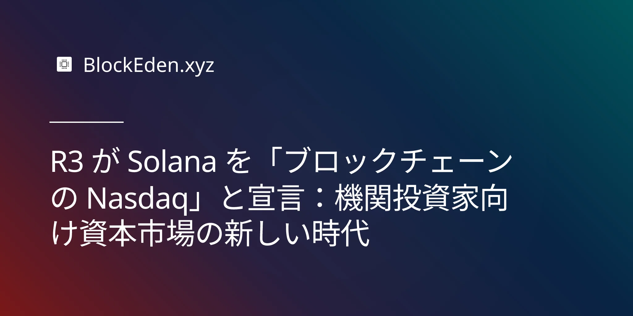 R3 が Solana を「ブロックチェーンの Nasdaq」と宣言:機関投資家向け資本市場の新しい時代