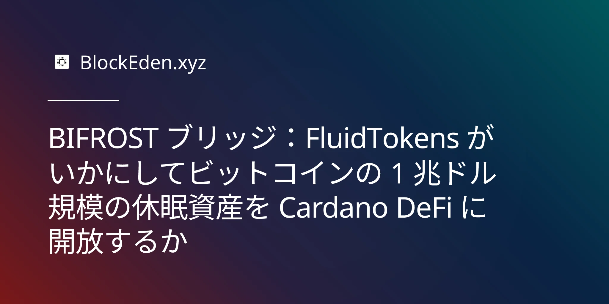 BIFROST ブリッジ:FluidTokens がいかにしてビットコインの 1 兆ドル規模の休眠資産を Cardano DeFi に開放するか