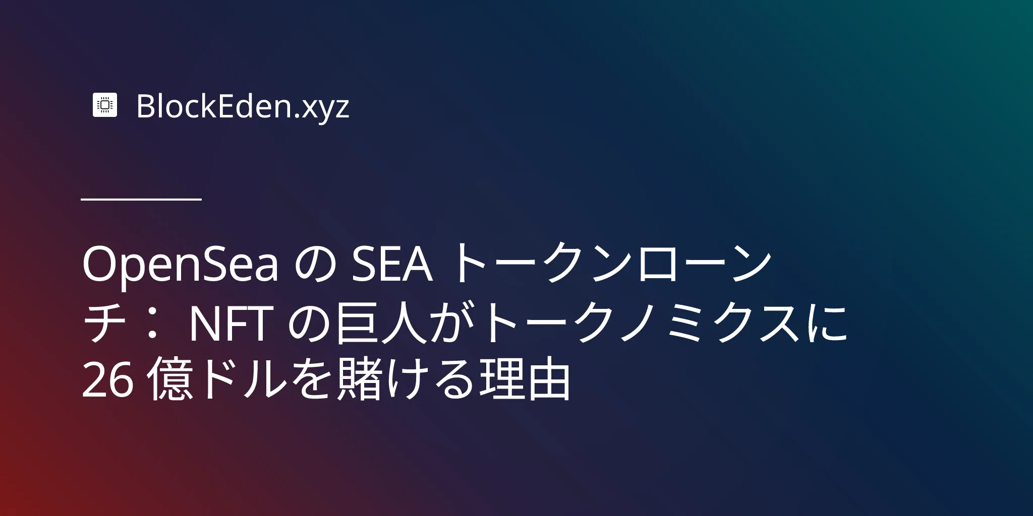 OpenSea の SEA トークンローンチ: NFT の巨人がトークノミクスに 26 億ドルを賭ける理由