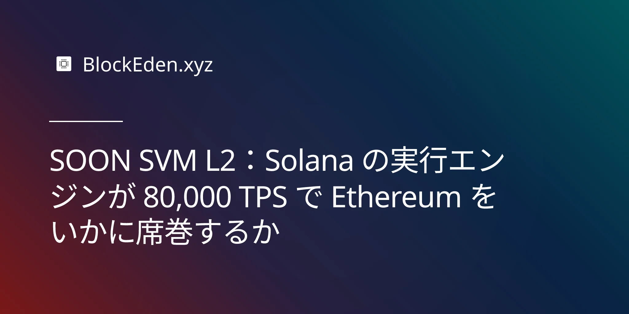 SOON SVM L2:Solana の実行エンジンが 80,000 TPS で Ethereum をいかに席巻するか