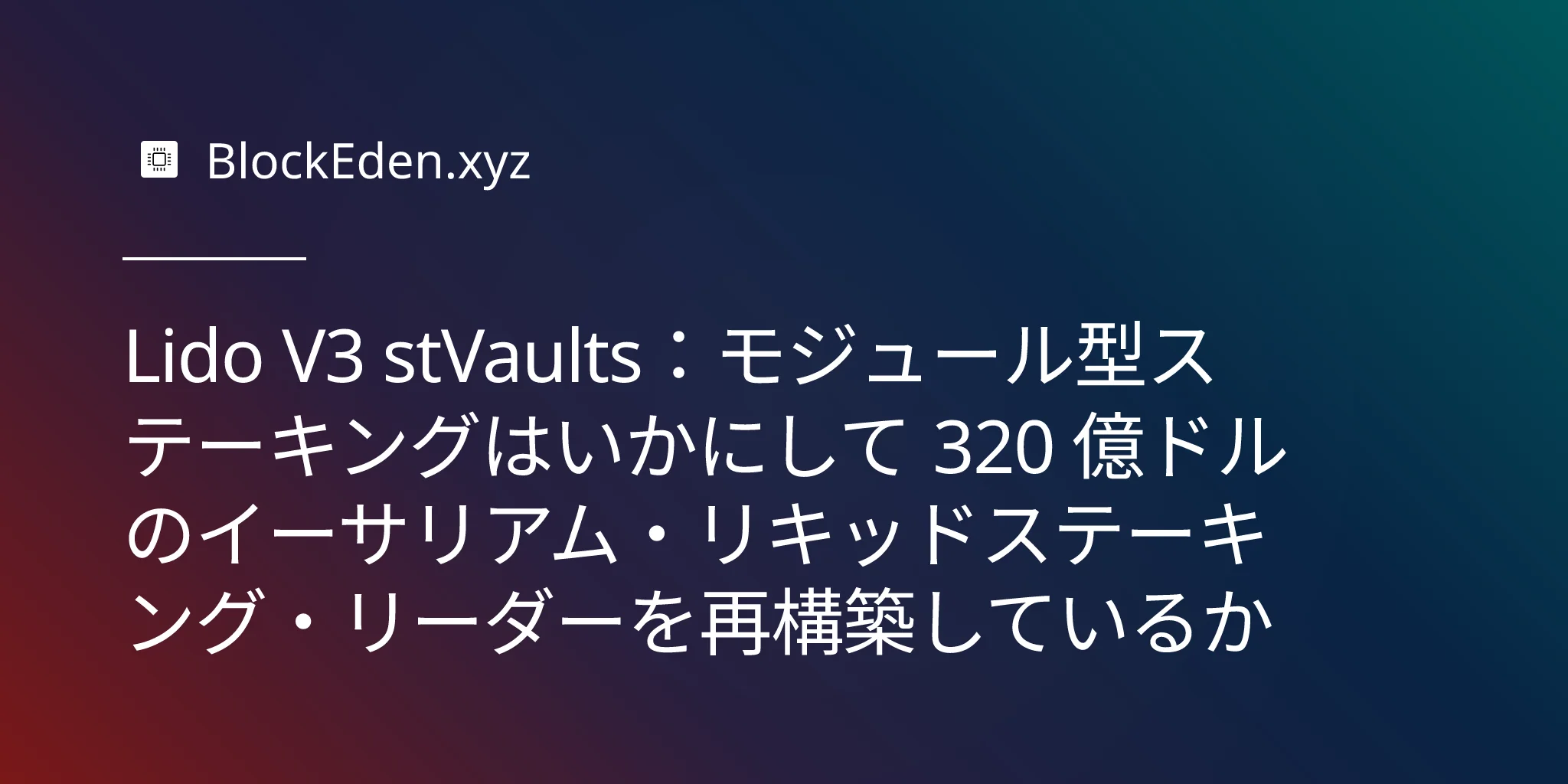 Lido V3 stVaults:モジュール型ステーキングはいかにして 320 億ドルのイーサリアム・リキッドステーキング・リーダーを再構築しているか