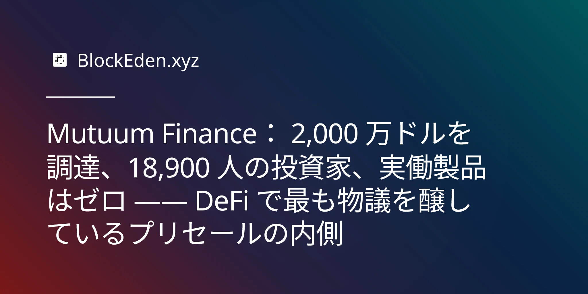 Mutuum Finance: 2,000 万ドルを調達、18,900 人の投資家、実働製品はゼロ —— DeFi で最も物議を醸しているプリセールの内側