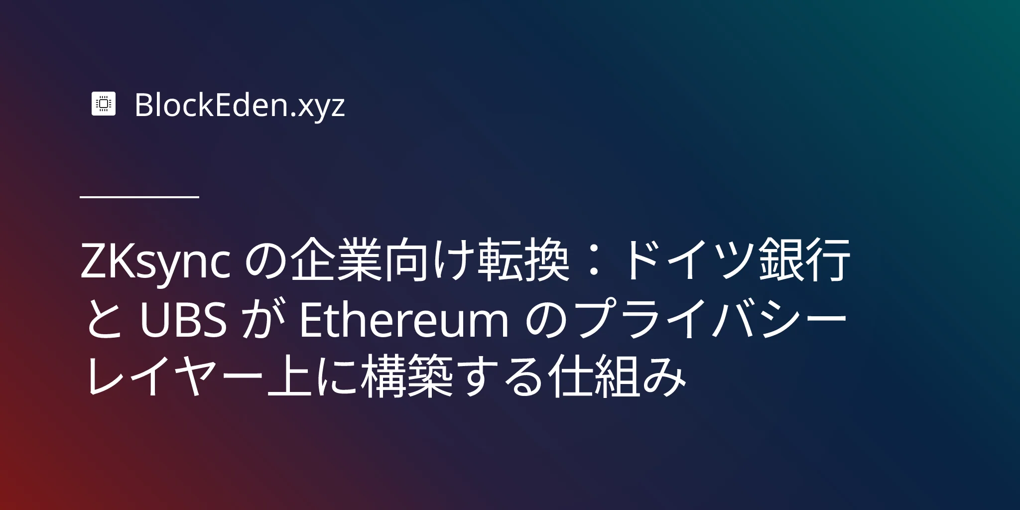 ZKsync の企業向け転換:ドイツ銀行と UBS が Ethereum のプライバシーレイヤー上に構築する仕組み
