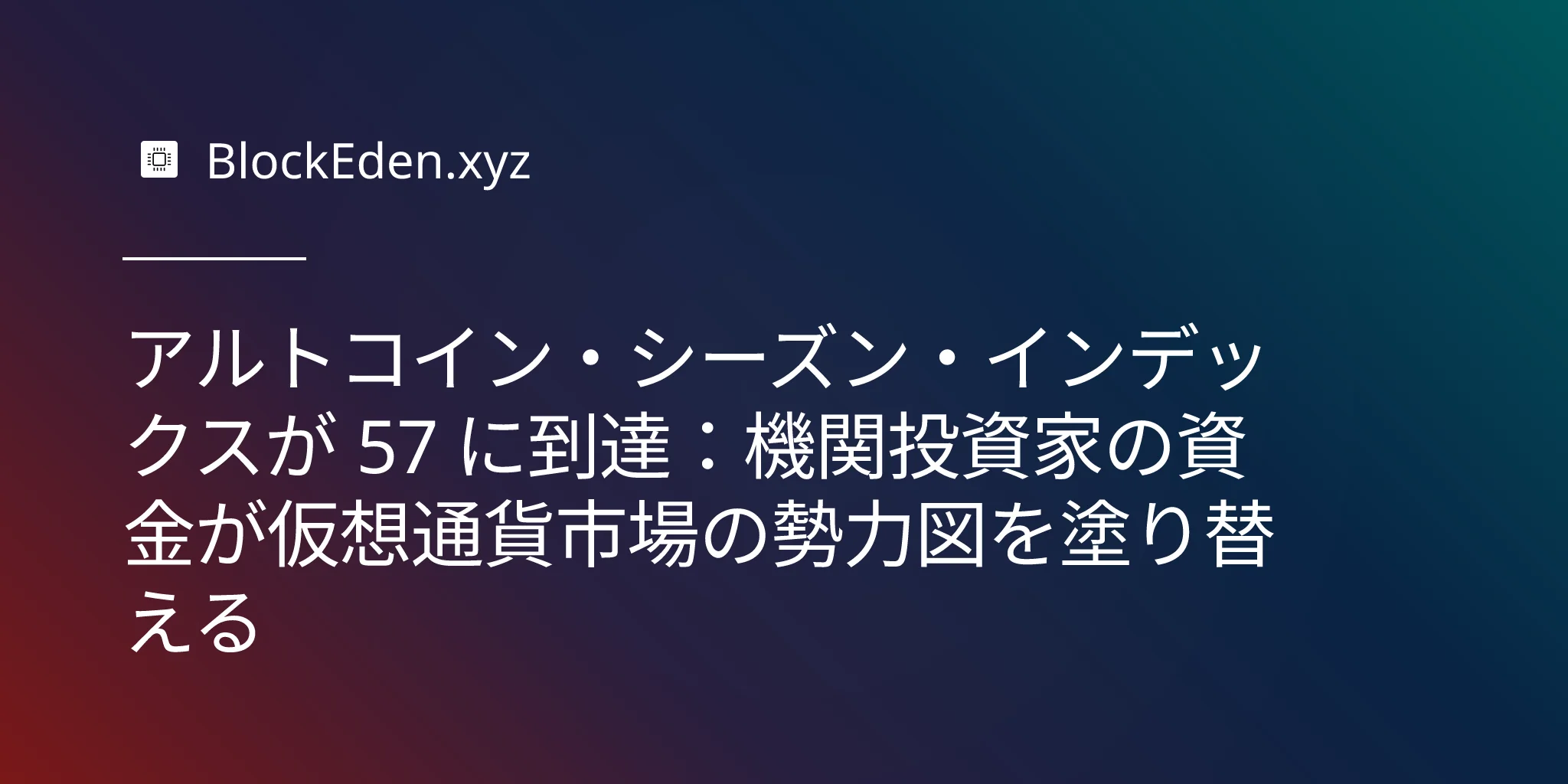 アルトコイン・シーズン・インデックスが 57 に到達:機関投資家の資金が仮想通貨市場の勢力図を塗り替える