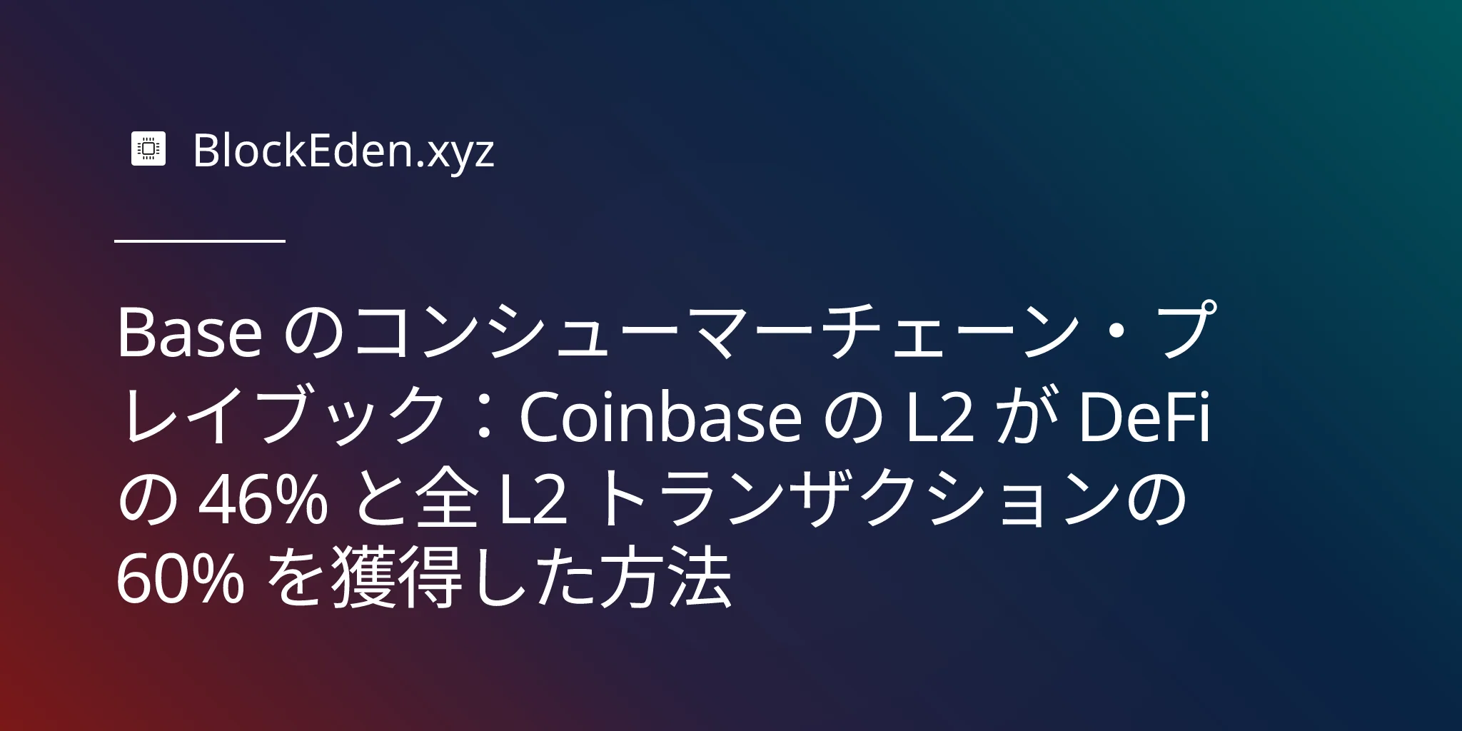 Base のコンシューマーチェーン・プレイブック:Coinbase の L2 が DeFi の 46% と全 L2 トランザクションの 60% を獲得した方法