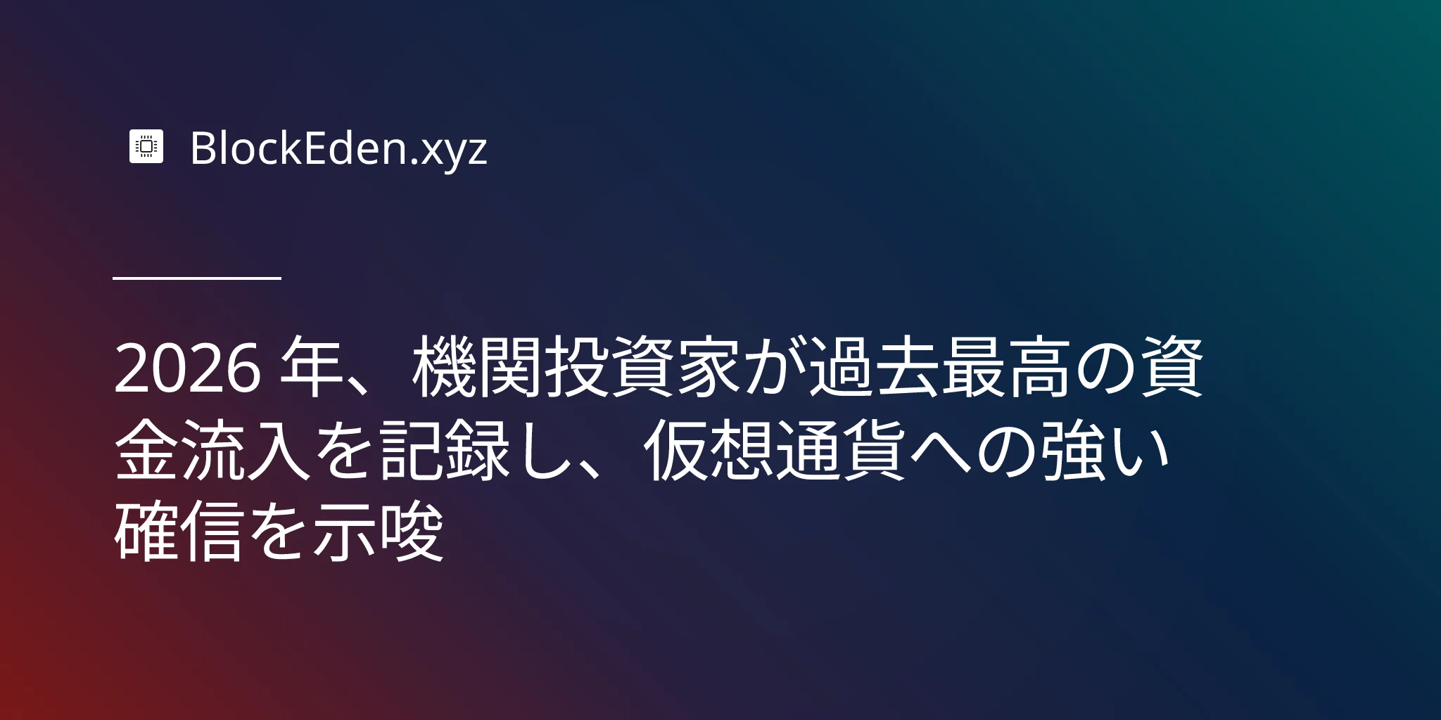 2026 年、機関投資家が過去最高の資金流入を記録し、仮想通貨への強い確信を示唆
