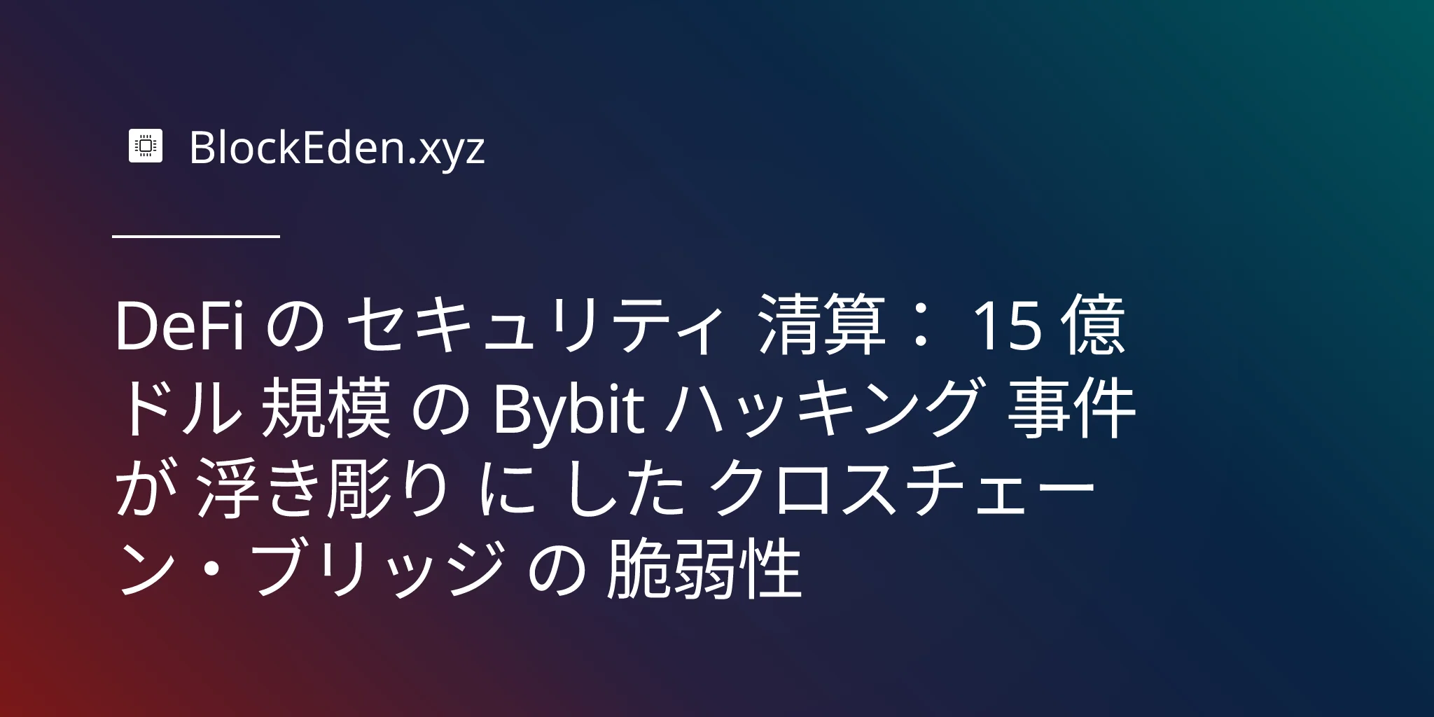DeFi の セキュリティ 清算: 15 億 ドル 規模 の Bybit ハッキング 事件 が 浮き彫り に した クロスチェーン・ブリッジ の 脆弱性
