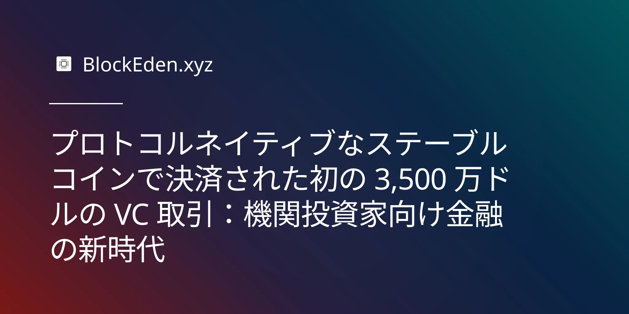 プロトコルネイティブなステーブルコインで決済された初の 3,500 万ドルの VC 取引:機関投資家向け金融の新時代