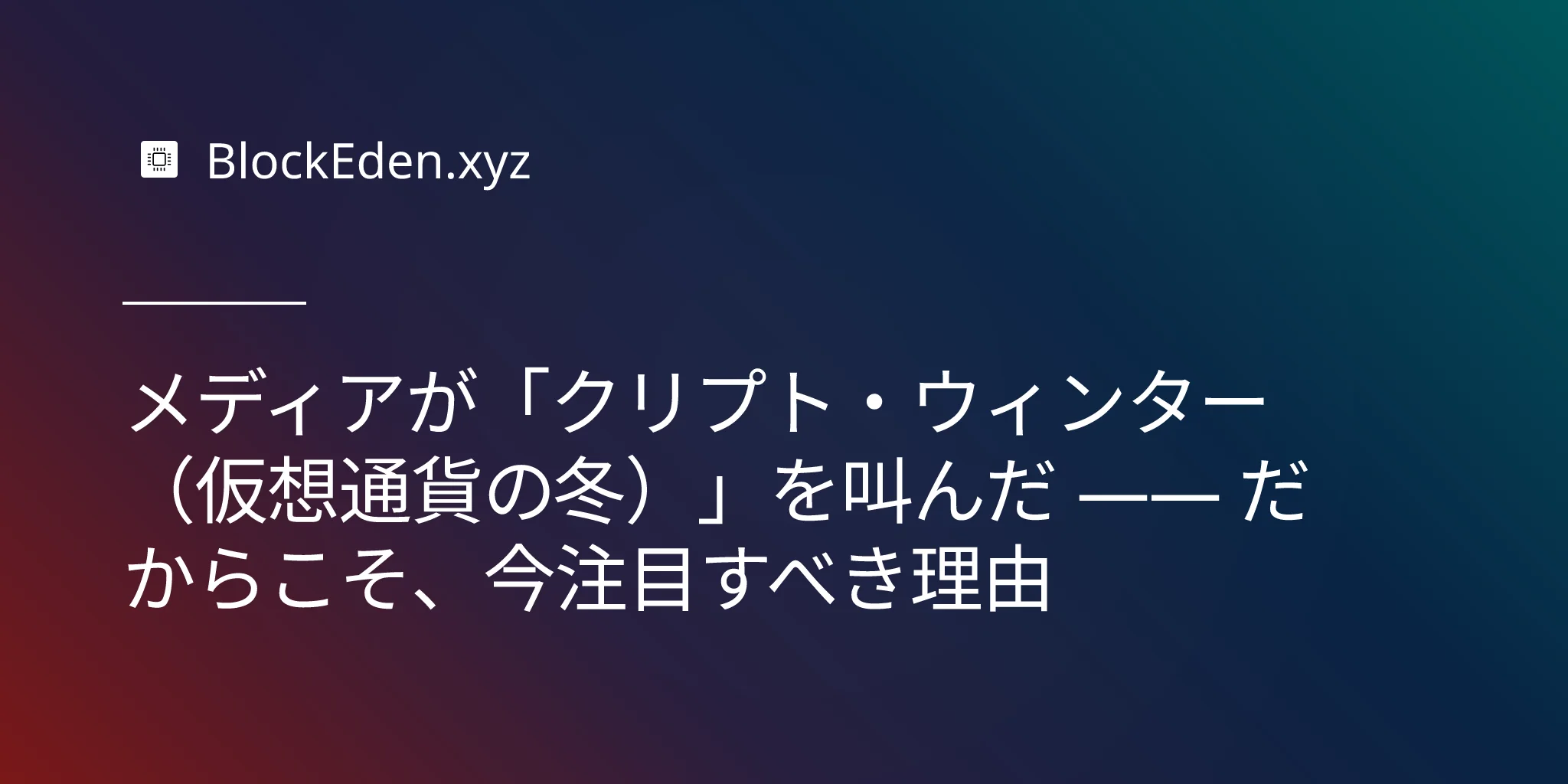 メディアが「クリプト・ウィンター(仮想通貨の冬)」を叫んだ —— だからこそ、今注目すべき理由