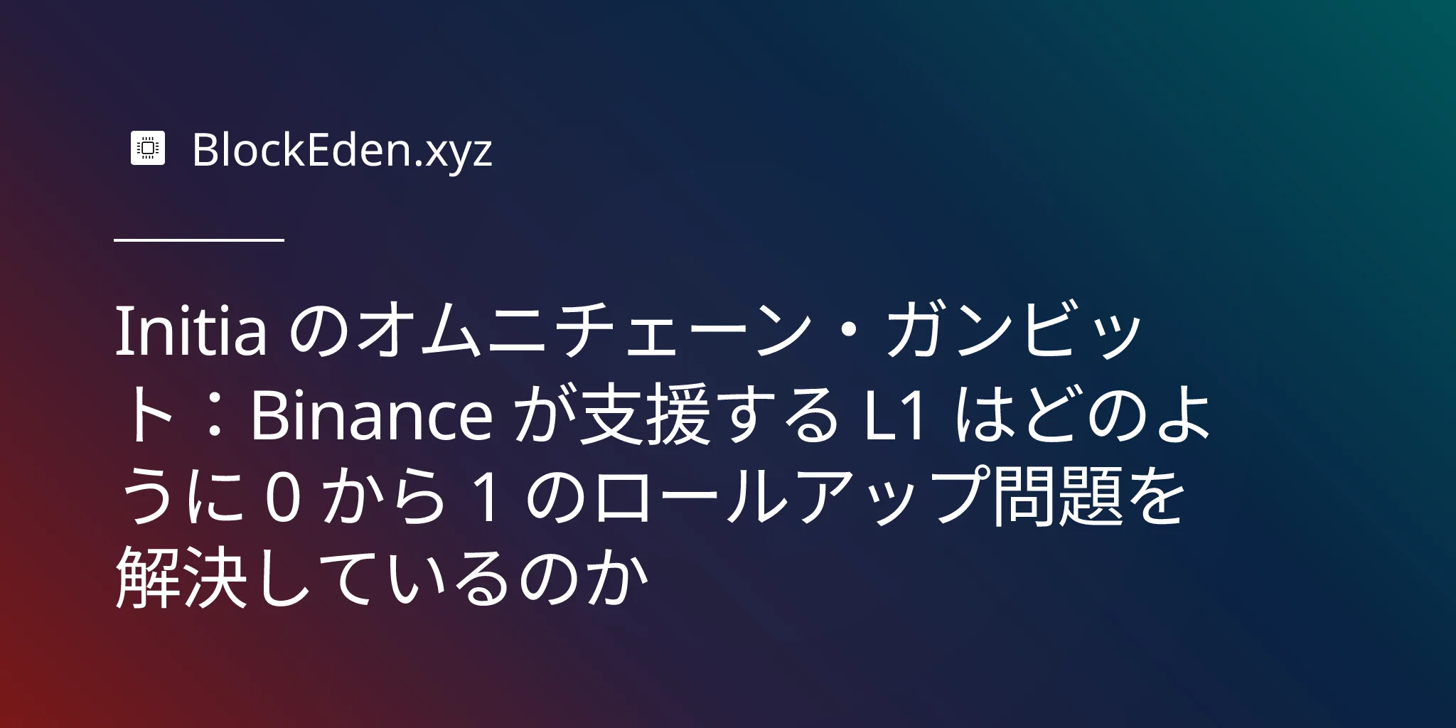 Initia のオムニチェーン・ガンビット:Binance が支援する L1 はどのように 0 から 1 のロールアップ問題を解決しているのか