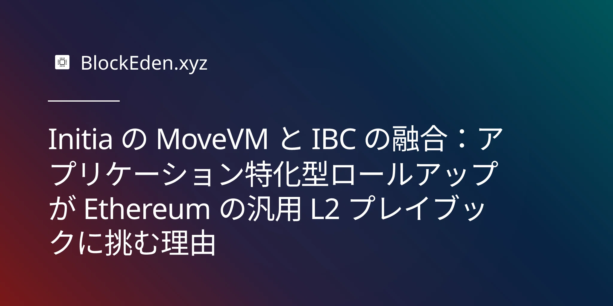 Initia の MoveVM と IBC の融合:アプリケーション特化型ロールアップが Ethereum の汎用 L2 プレイブックに挑む理由