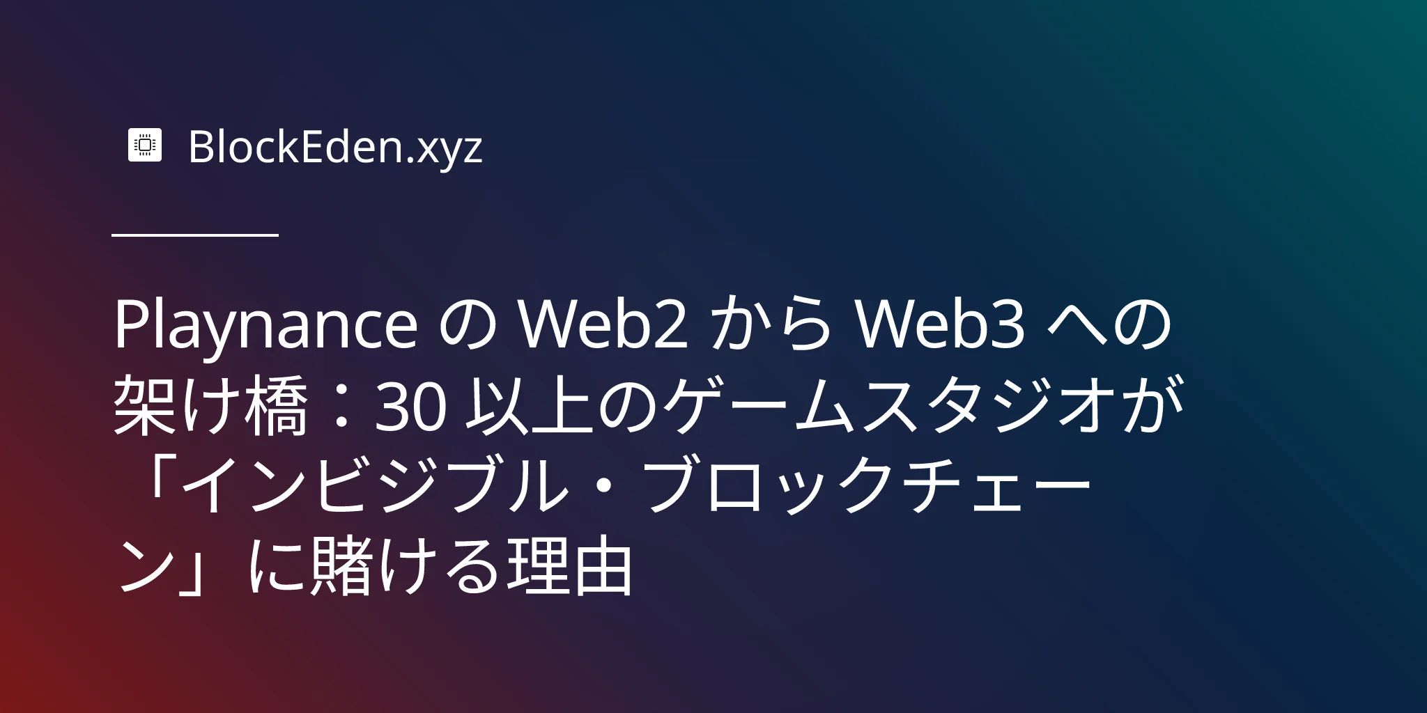 Playnance の Web2 から Web3 への架け橋:30 以上のゲームスタジオが「インビジブル・ブロックチェーン」に賭ける理由