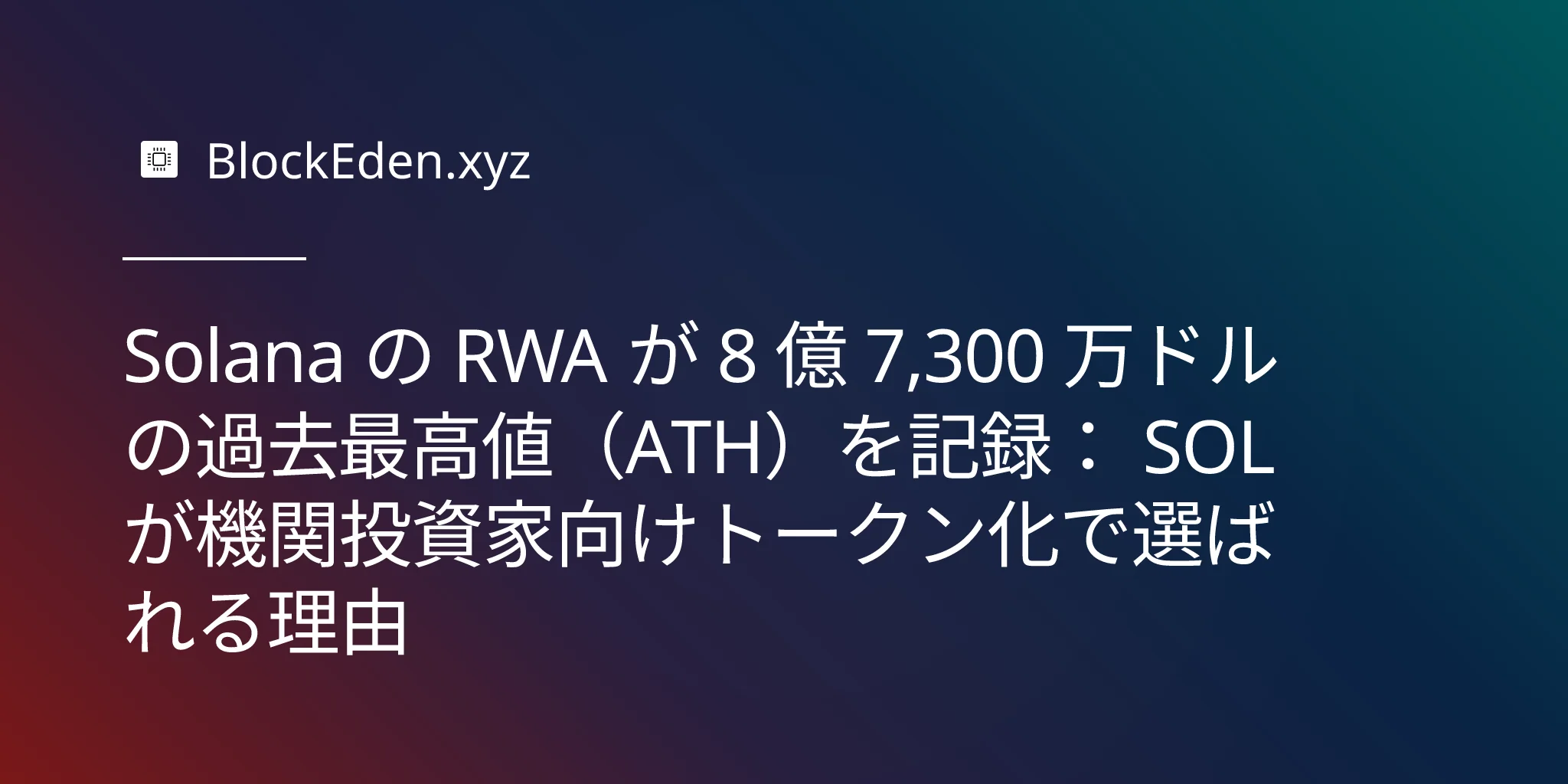Solana の RWA が 8 億 7,300 万ドルの過去最高値(ATH)を記録: SOL が機関投資家向けトークン化で選ばれる理由