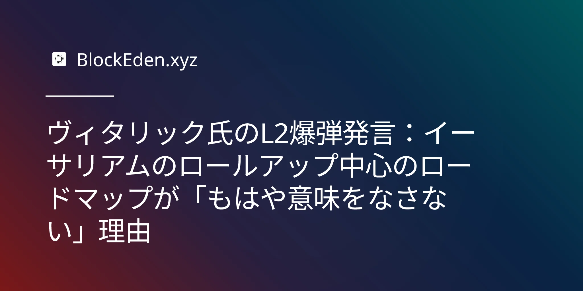 ヴィタリック氏のL2爆弾発言:イーサリアムのロールアップ中心のロードマップが「もはや意味をなさない」理由