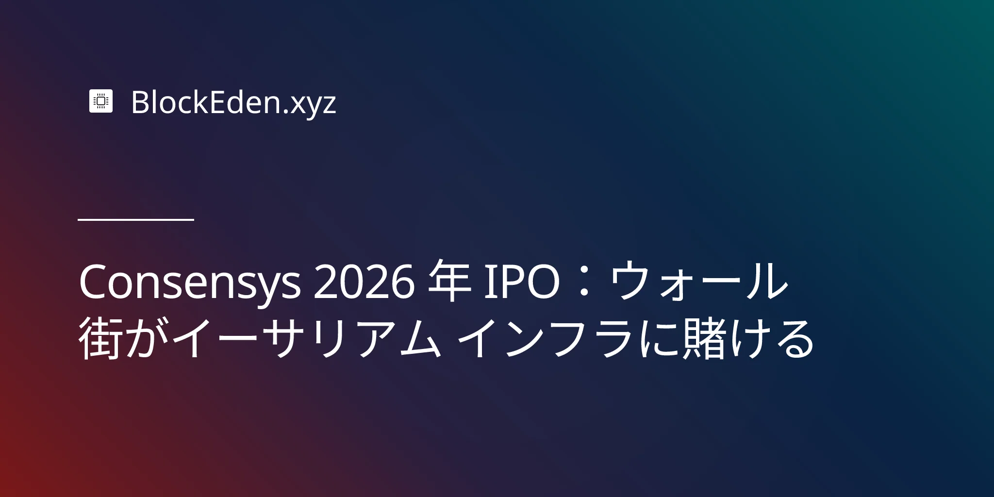 Consensys は 2026 年半ばの IPO に向けて JPMorgan と Goldman Sachs を指名しました。これは、イーサリアムのコア インフラに深く組み込まれた企業の初の株式公開となります。SEC は MetaMask のステーキング サービスをめぐる Consensys への提訴を取り下げ、評価額 70 億ドルの同社が公開市場に参入するための最後の規制上のハードルが取り除かれました。