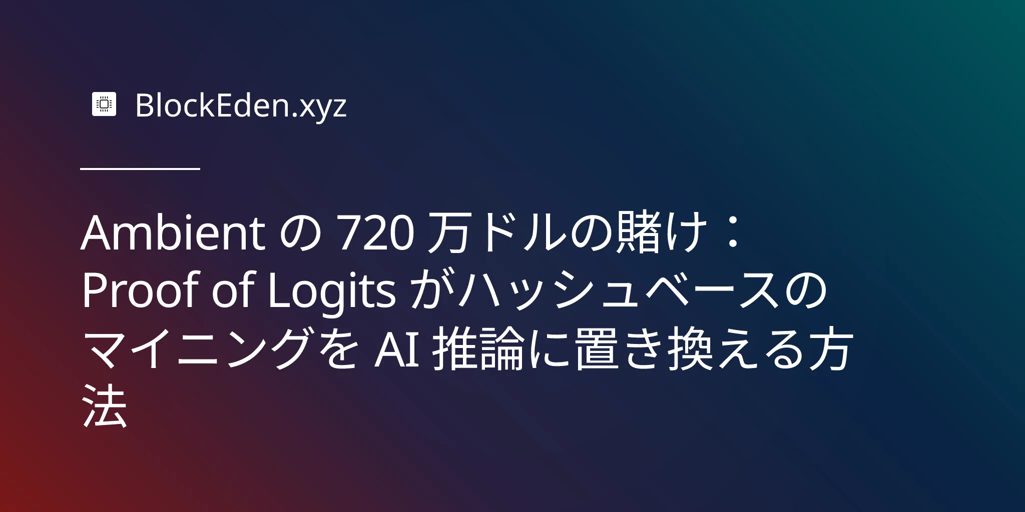 Ambient の 720 万ドルの賭け: Proof of Logits がハッシュベースのマイニングを AI 推論に置き換える方法