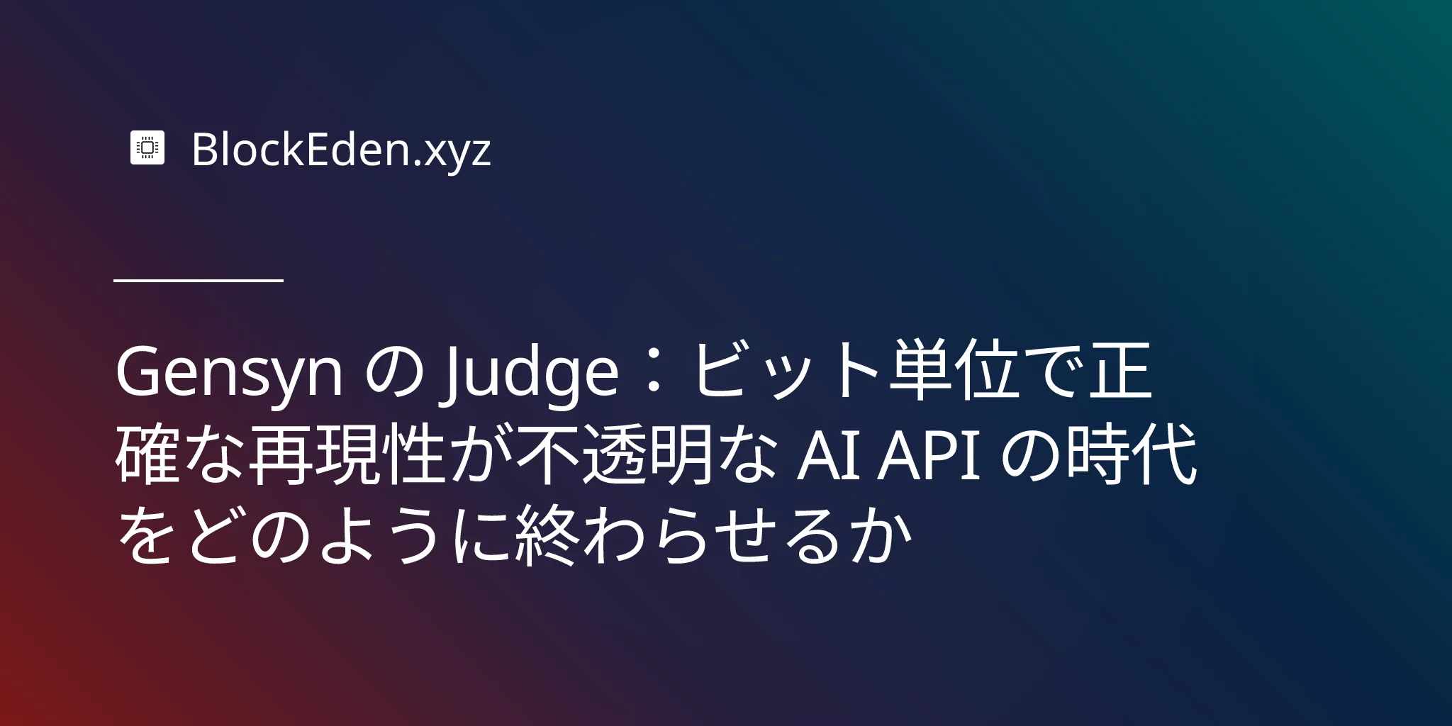 Gensyn の Judge:ビット単位で正確な再現性が不透明な AI API の時代をどのように終わらせるか