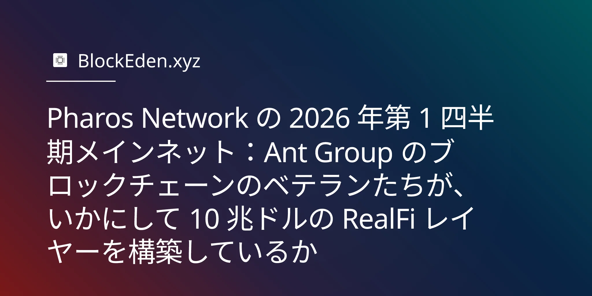 Lightspeed Faction と Hack VC から 800 万ドルのシード資金調達、Draper Dragon が支援する 1,000 万ドルの RealFi インキュベーター を獲得し、2026 年第 1 四半期のメインネットローンチを控えた Pharos は、ある大きな賭けを象徴しています。それは、機関投資家のオンチェーンへの移行は、Ethereum の L2 や Solana の高速インフラ上ではなく、Alibaba の年間 GMV 2 兆ドル以上を支えるブロックチェーン「Ant Chain」を構築したチームが設計した、コンプライアンス第一かつ RWA に最適化されたチェーン上で起こるという賭けです。