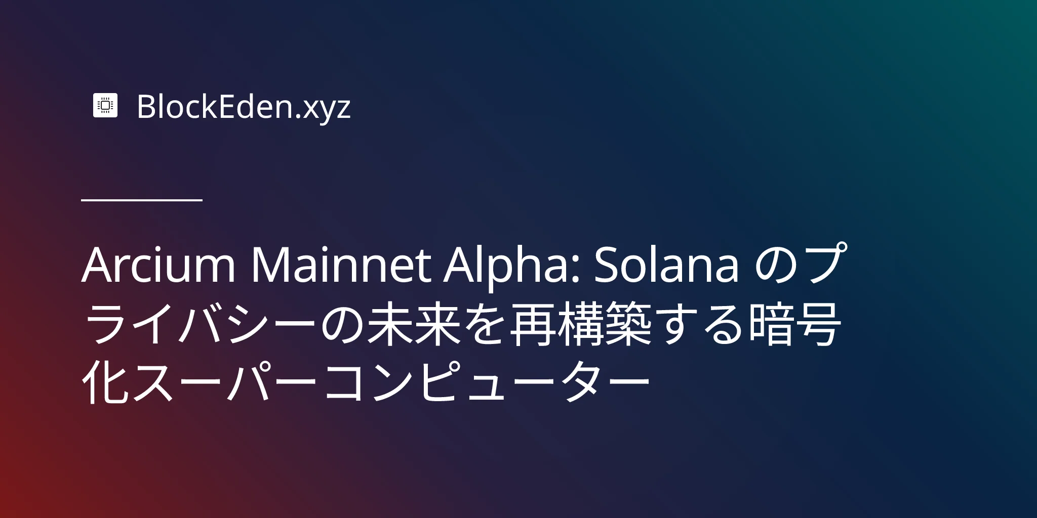 Arcium Mainnet Alpha: Solana のプライバシーの未来を再構築する暗号化スーパーコンピューター