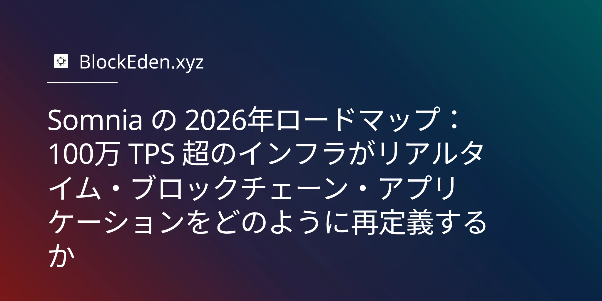 Somnia の 2026年ロードマップ:100万 TPS 超のインフラがリアルタイム・ブロックチェーン・アプリケーションをどのように再定義するか