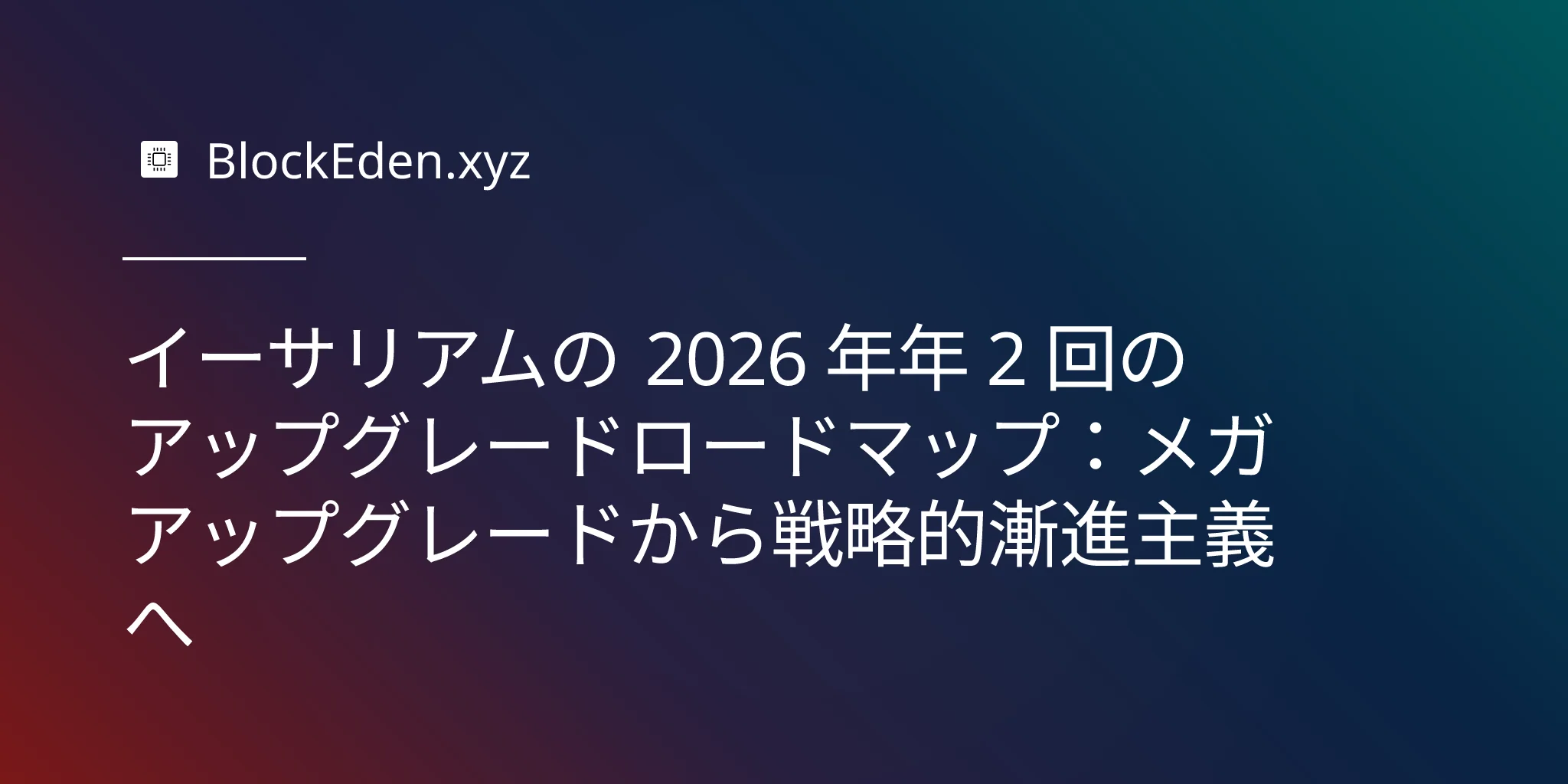 イーサリアムのコア開発者が、2026 年に予定されている 2 つの主要なネットワークアップグレードである Fusaka(フサカ)と Glamsterdam(グラムステルダム)を発表した際、彼らは単に技術的なロードマップを公開しただけではありませんでした。彼らは、世界最大のスマートコントラクトプラットフォームがどのように進化するかという根本的な転換を示唆していました。つまり、巨大な「ビッグバン」型のリリースから、予測可能な年 2 回の段階的な改善への移行です。この戦略的な転換は、イーサリアムがその支配力を維持するか、より動きの速い競合他社に遅れをとるかの分かれ目になる可能性があります。