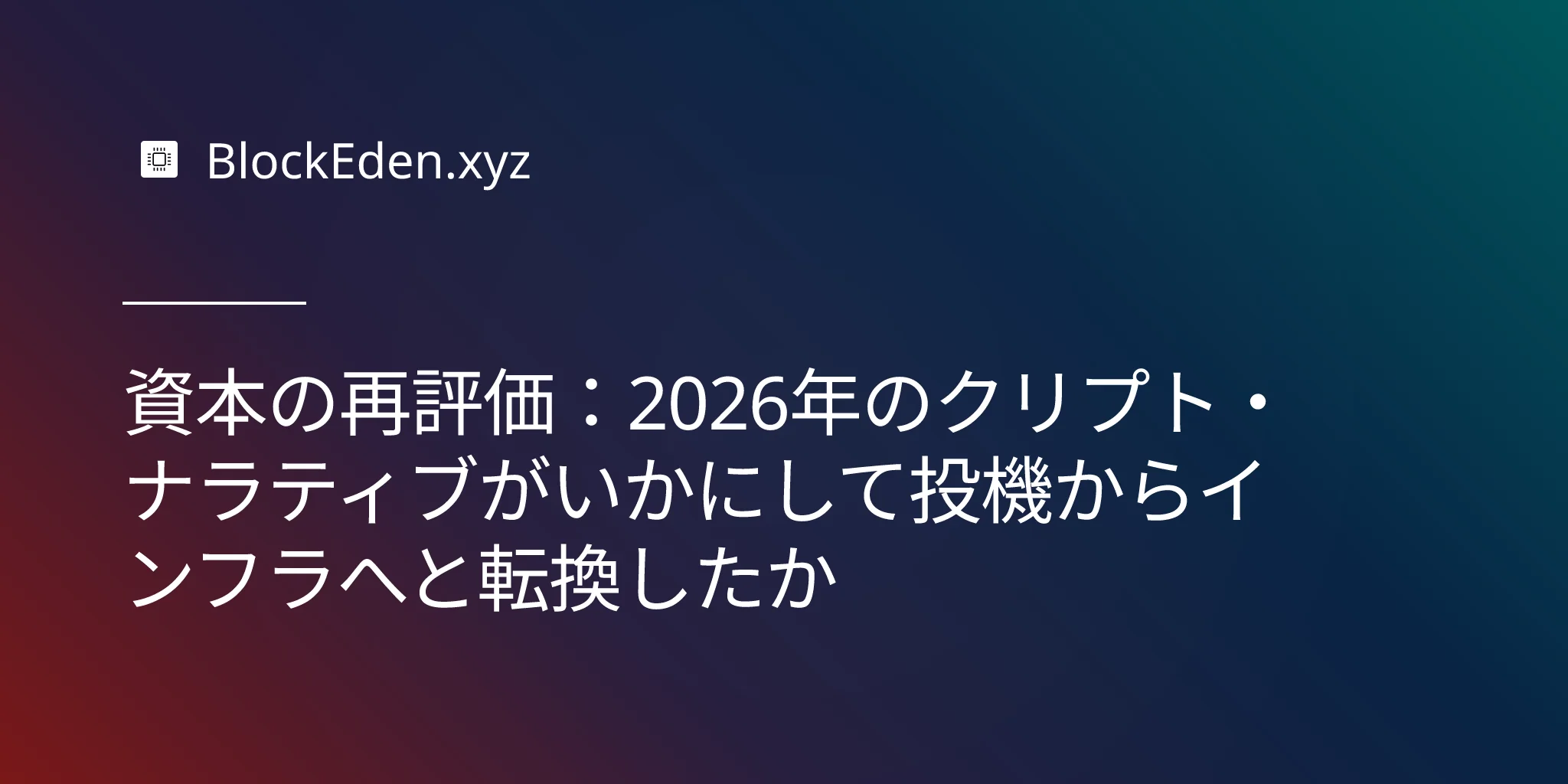 資本の再評価:2026年のクリプト・ナラティブがいかにして投機からインフラへと転換したか