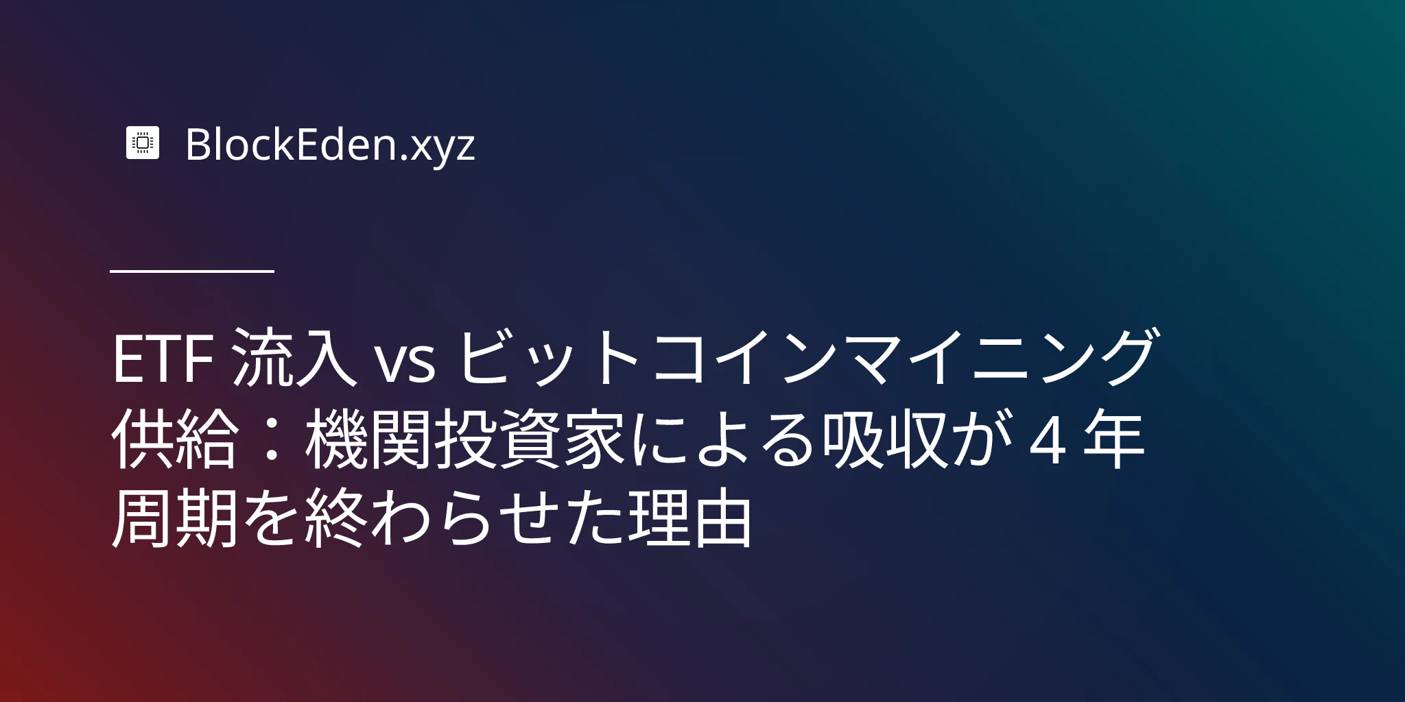 ETF 流入 vs ビットコインマイニング供給:機関投資家による吸収が 4 年周期を終わらせた理由