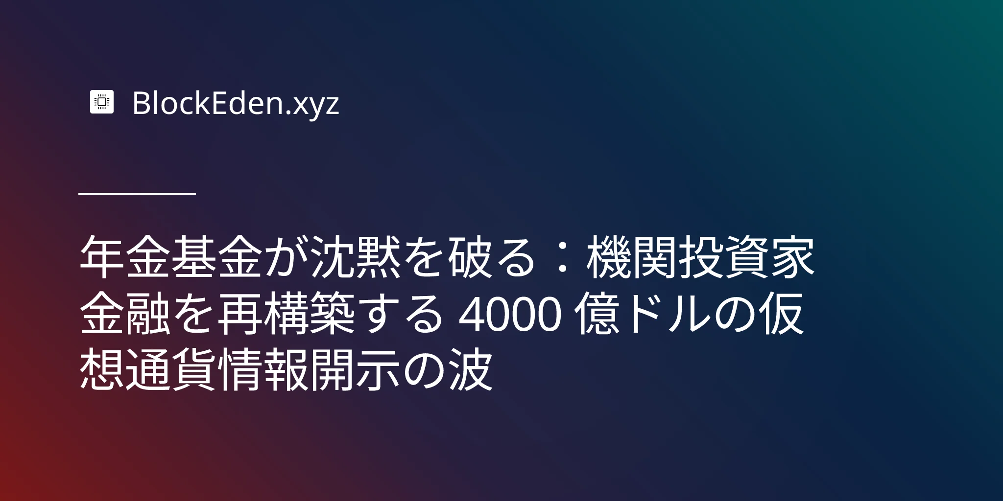 年金基金が沈黙を破る:機関投資家金融を再構築する 4000 億ドルの仮想通貨情報開示の波