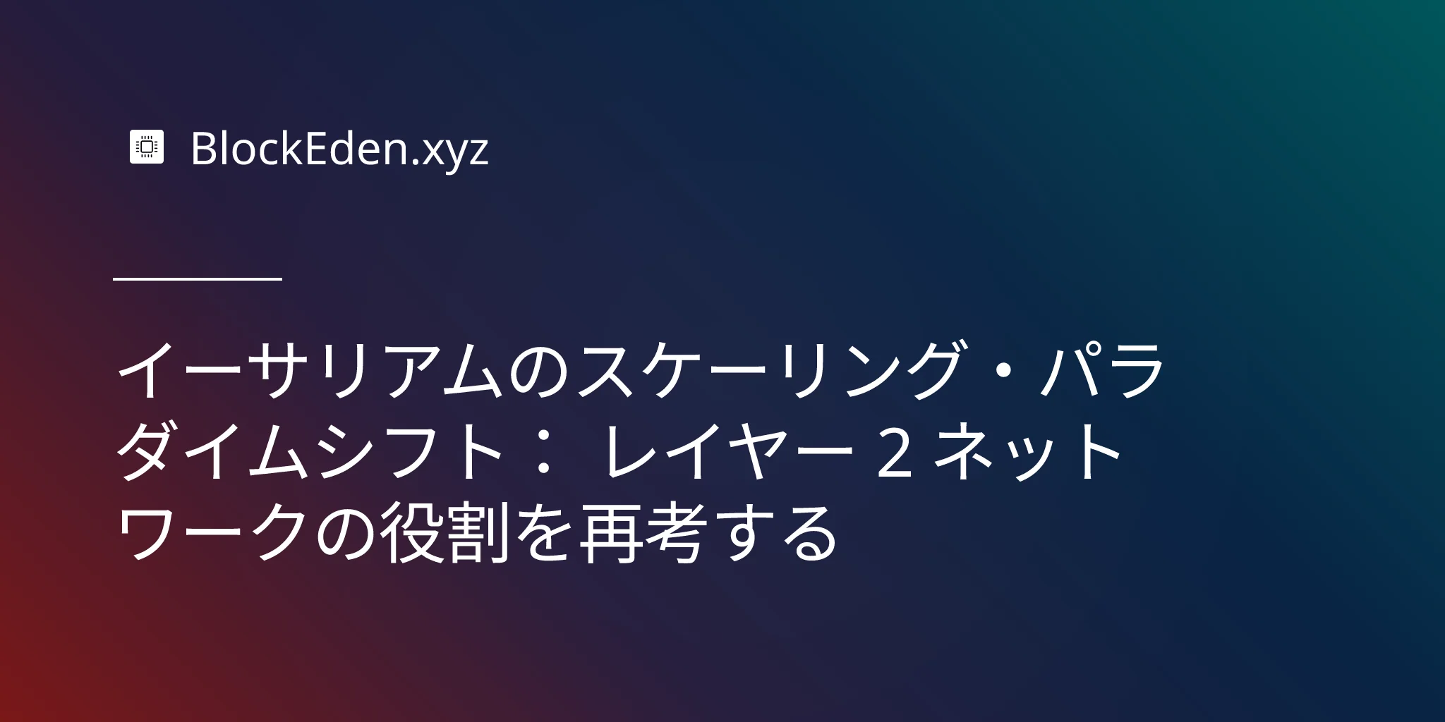 イーサリアムのスケーリング・パラダイムシフト: レイヤー 2 ネットワークの役割を再考する