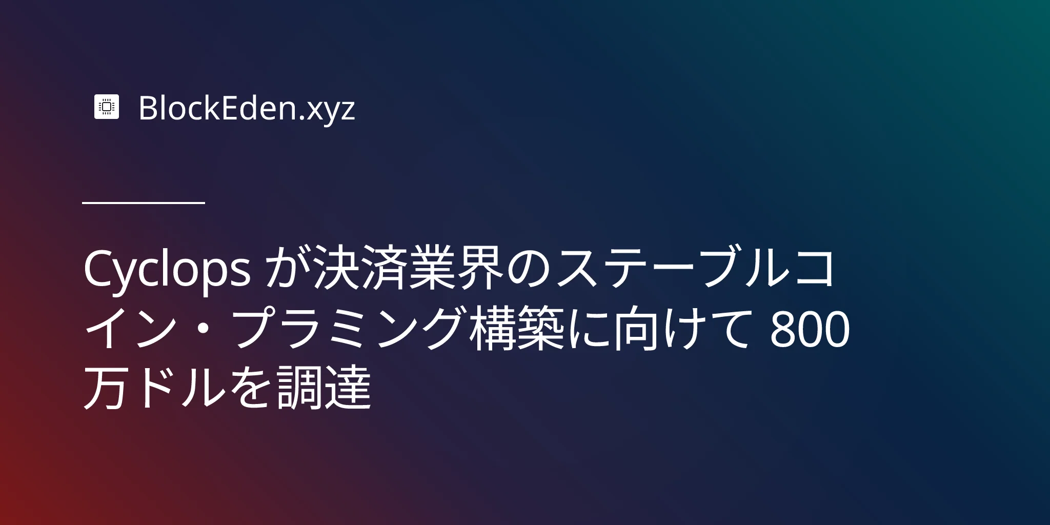 Cyclops が決済業界のステーブルコイン・プラミング構築に向けて 800 万ドルを調達