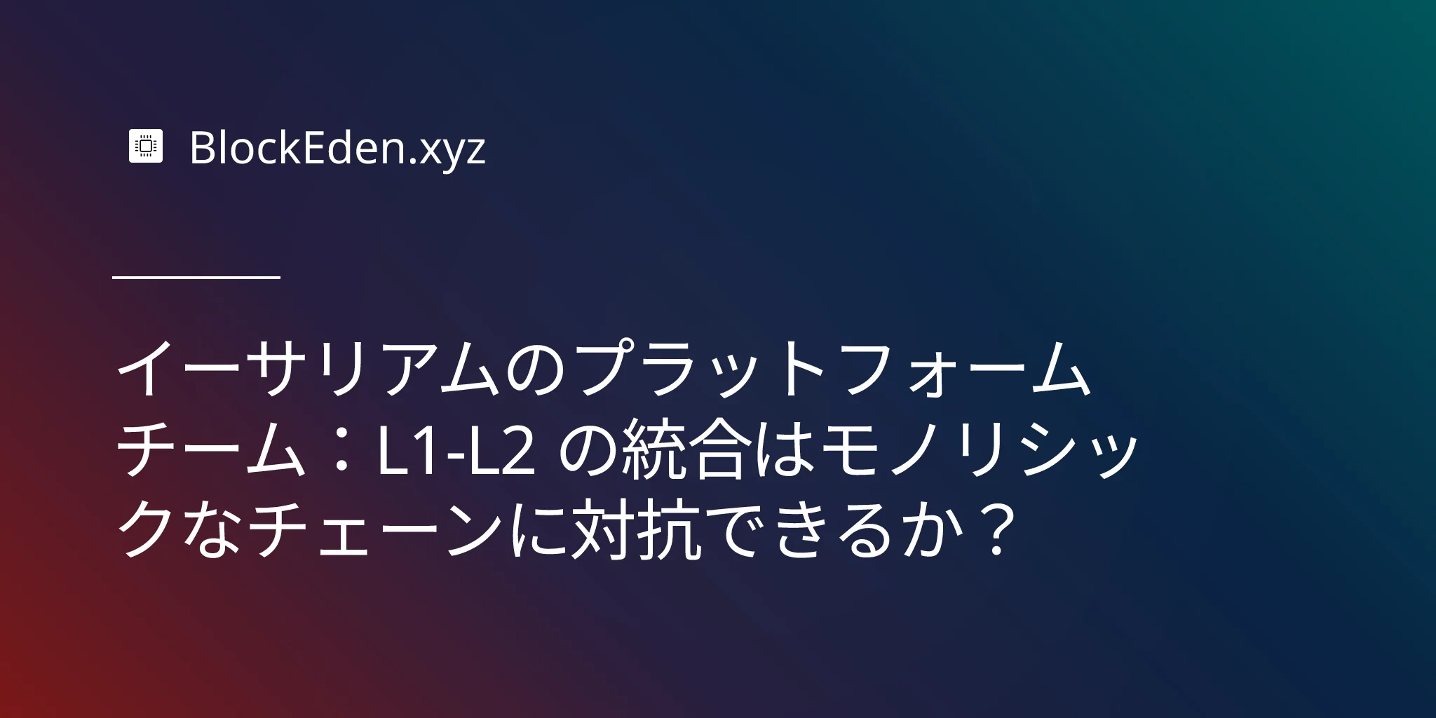イーサリアムのプラットフォームチーム:L1-L2 の統合はモノリシックなチェーンに対抗できるか?
