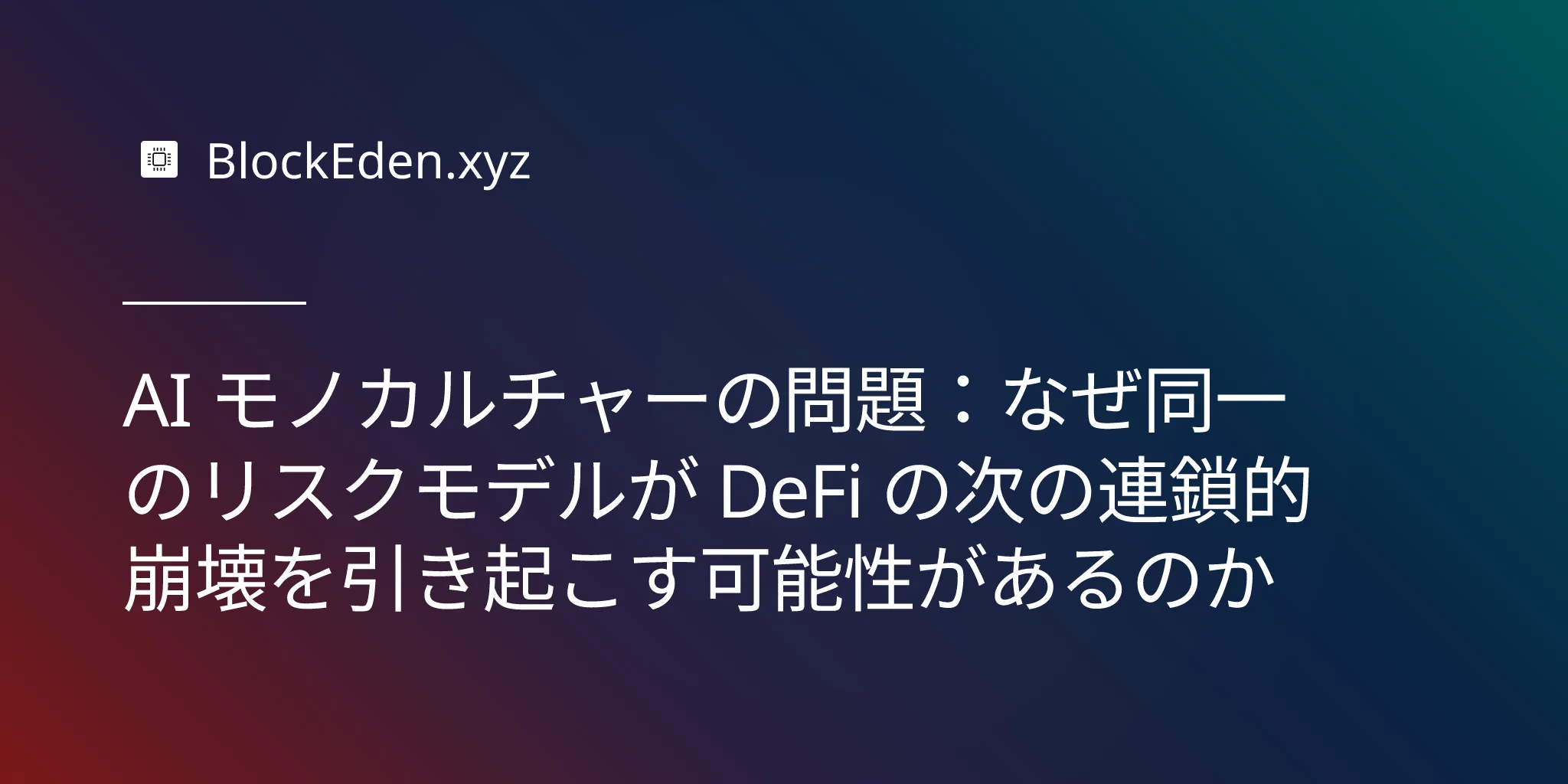 AI モノカルチャーの問題:なぜ同一のリスクモデルが DeFi の次の連鎖的崩壊を引き起こす可能性があるのか