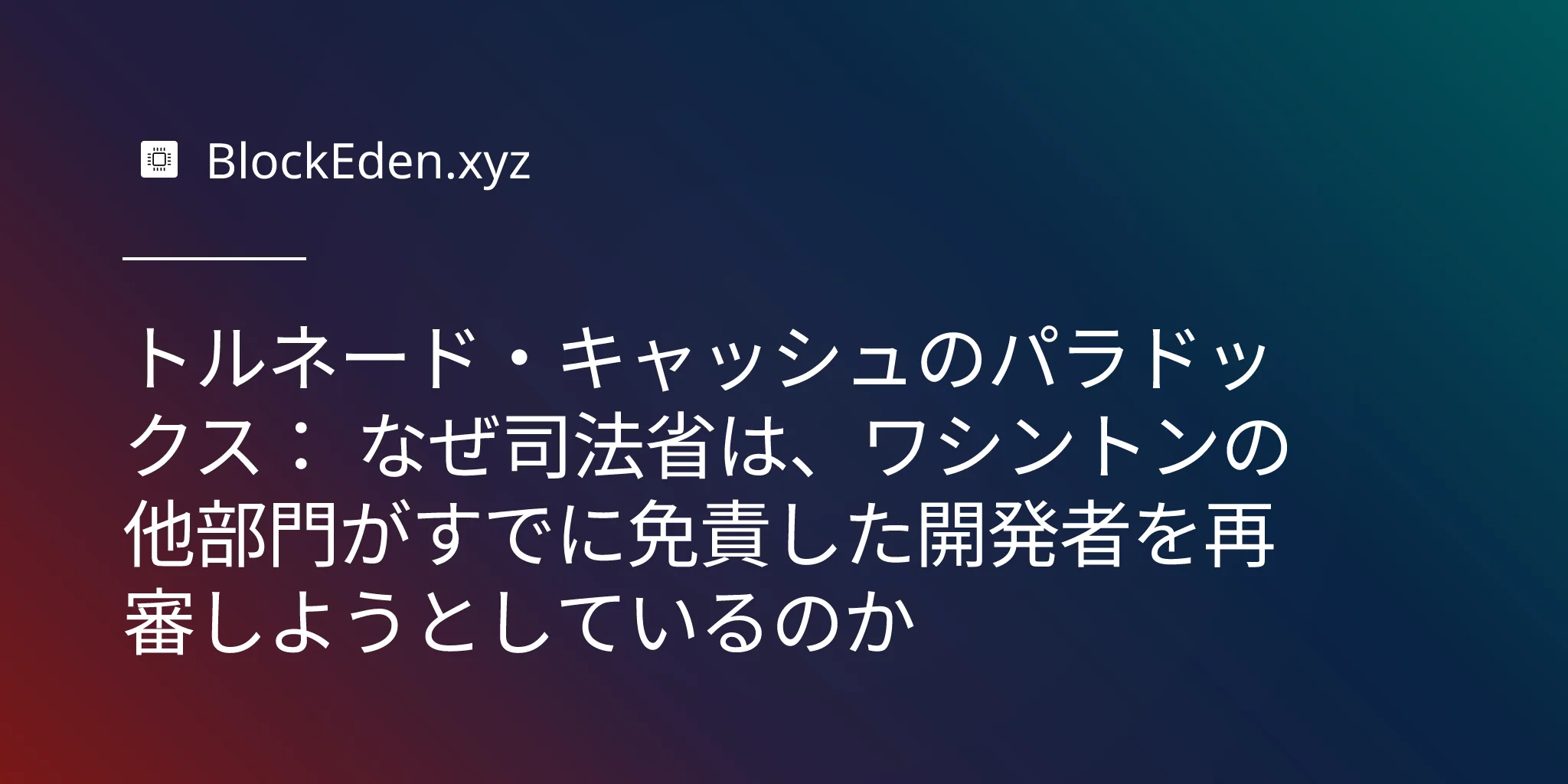 トルネード・キャッシュのパラドックス: なぜ司法省は、ワシントンの他部門がすでに免責した開発者を再審しようとしているのか