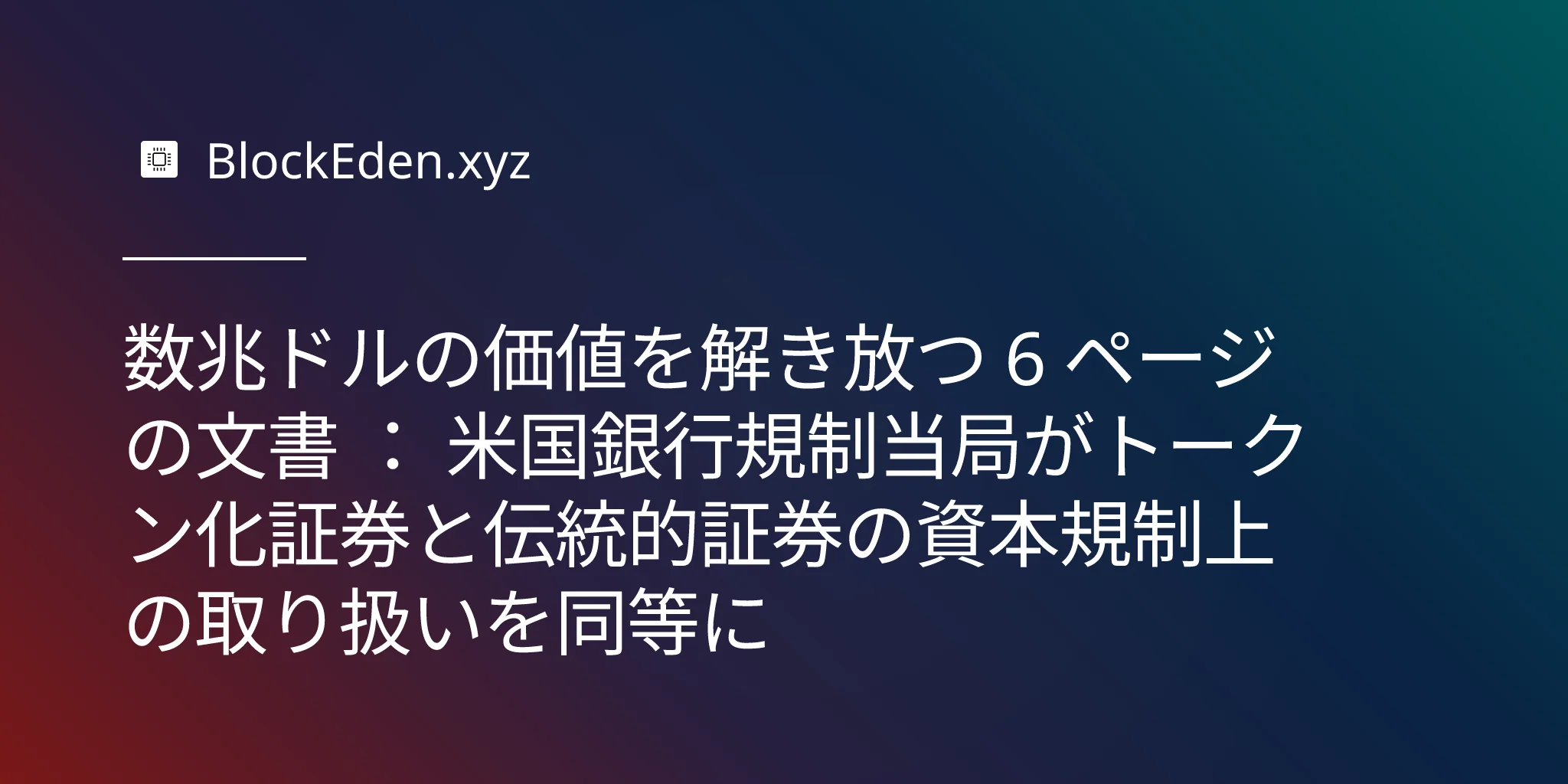 数兆ドルの価値を解き放つ 6 ページの文書 : 米国銀行規制当局がトークン化証券と伝統的証券の資本規制上の取り扱いを同等に