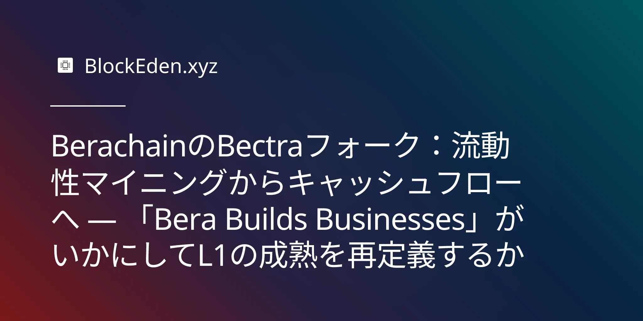 Berachain が 2026 年 1 月 14 日に「Bera Builds Businesses」イニシアチブを発表した際、BERA トークンはわずか 1 日で 150 % 急騰しました。しかし、本当の物語は価格の急騰ではなく、この戦略的転換がレイヤー 1(L1)ブロックチェーン経済の進化について何を明らかにしているかという点にあります。2 月の Bectra ハードフォークが完了し、2 億 8,000 万 BERA(総供給量の 5.6 %)という大規模な供給ロック解除を控えた今、Berachain は大胆な賭けに出ています。それは、持続可能な収益がインセンティブ・ファーミングに勝ること、キャッシュフローが預かり資産(TVL)よりも重要であること、そして未来は単にトークンを分配するのではなく、本物のビジネスを構築するブロックチェーンに属しているということです。