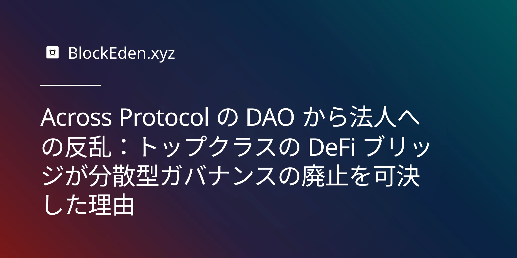 「デフォルトで DAO」という時代は終わろうとしているのかもしれません。それに代わるものは純粋な中央集権化への回帰ではなく、プロトコルのニーズに合わせたよりきめ細かなガバナンス構造のマッチングです。DAO を必要とするプロジェクトもあれば、企業を必要とするプロジェクトもあります。そして Across のように、間違った構造を選択したことを認めて進路を変更する勇気を必要とするプロジェクトもあるのです。