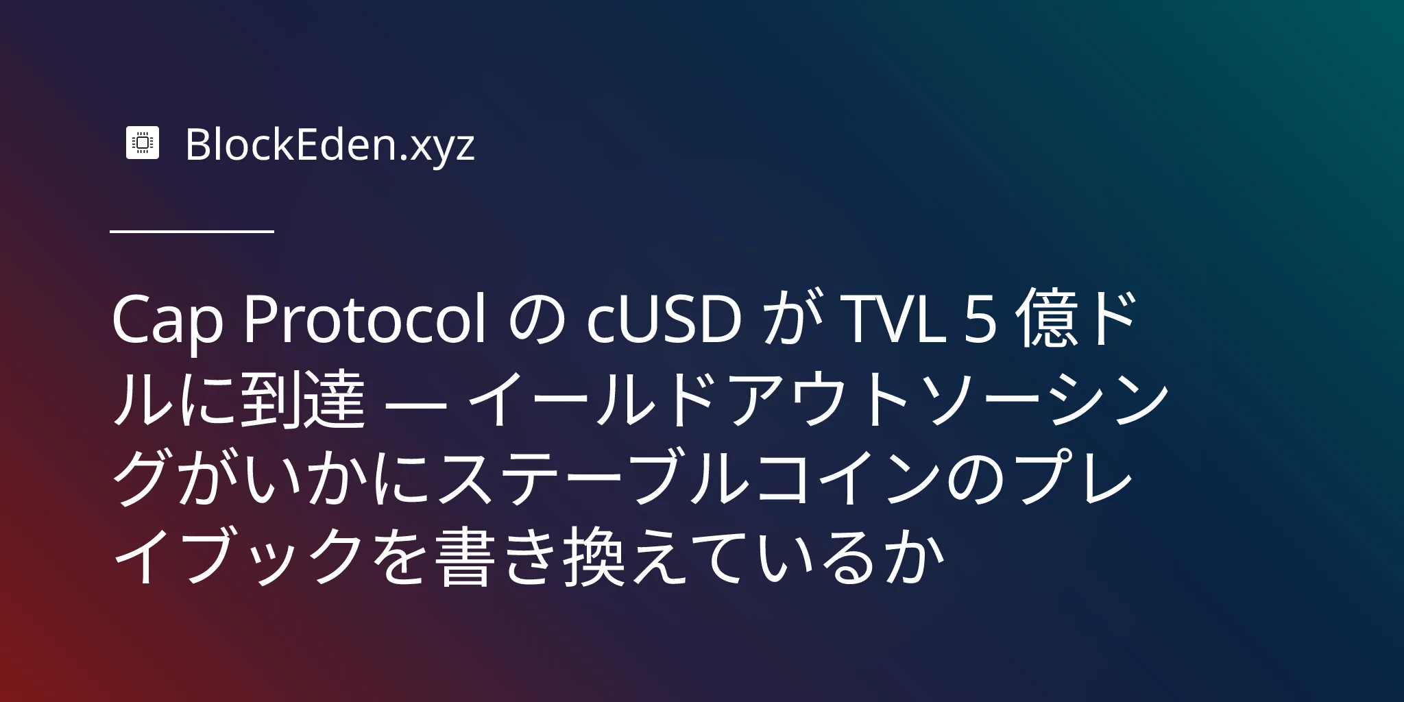 Cap Protocol の cUSD が TVL 5 億ドルに到達 — イールドアウトソーシングがいかにステーブルコインのプレイブックを書き換えているか