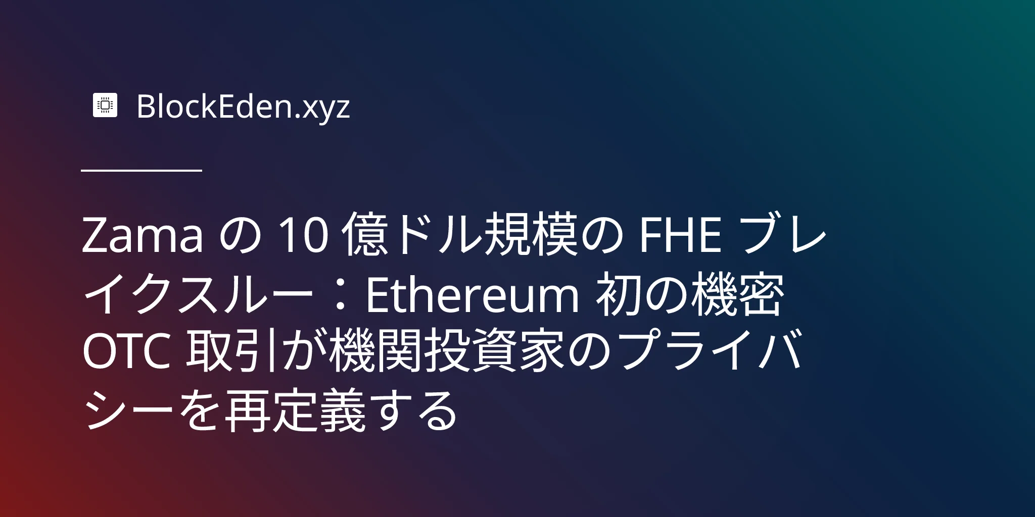 Zama の 10 億ドル規模の FHE ブレイクスルー:Ethereum 初の機密 OTC 取引が機関投資家のプライバシーを再定義する