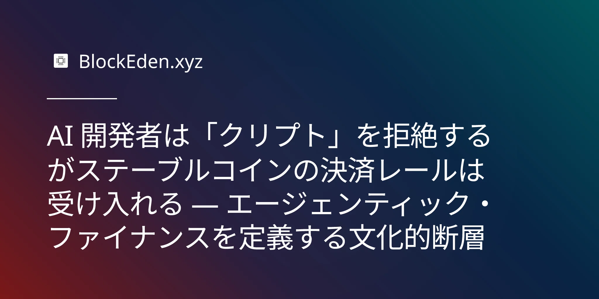 AI 開発者は「クリプト」を拒絶するがステーブルコインの決済レールは受け入れる — エージェンティック・ファイナンスを定義する文化的断層