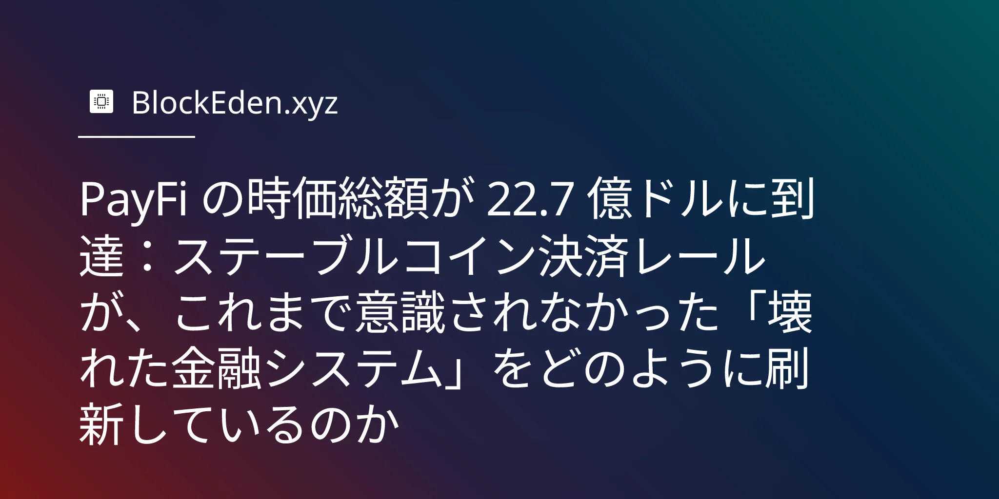 PayFi の時価総額が 22.7 億ドルに到達:ステーブルコイン決済レールが、これまで意識されなかった「壊れた金融システム」をどのように刷新しているのか