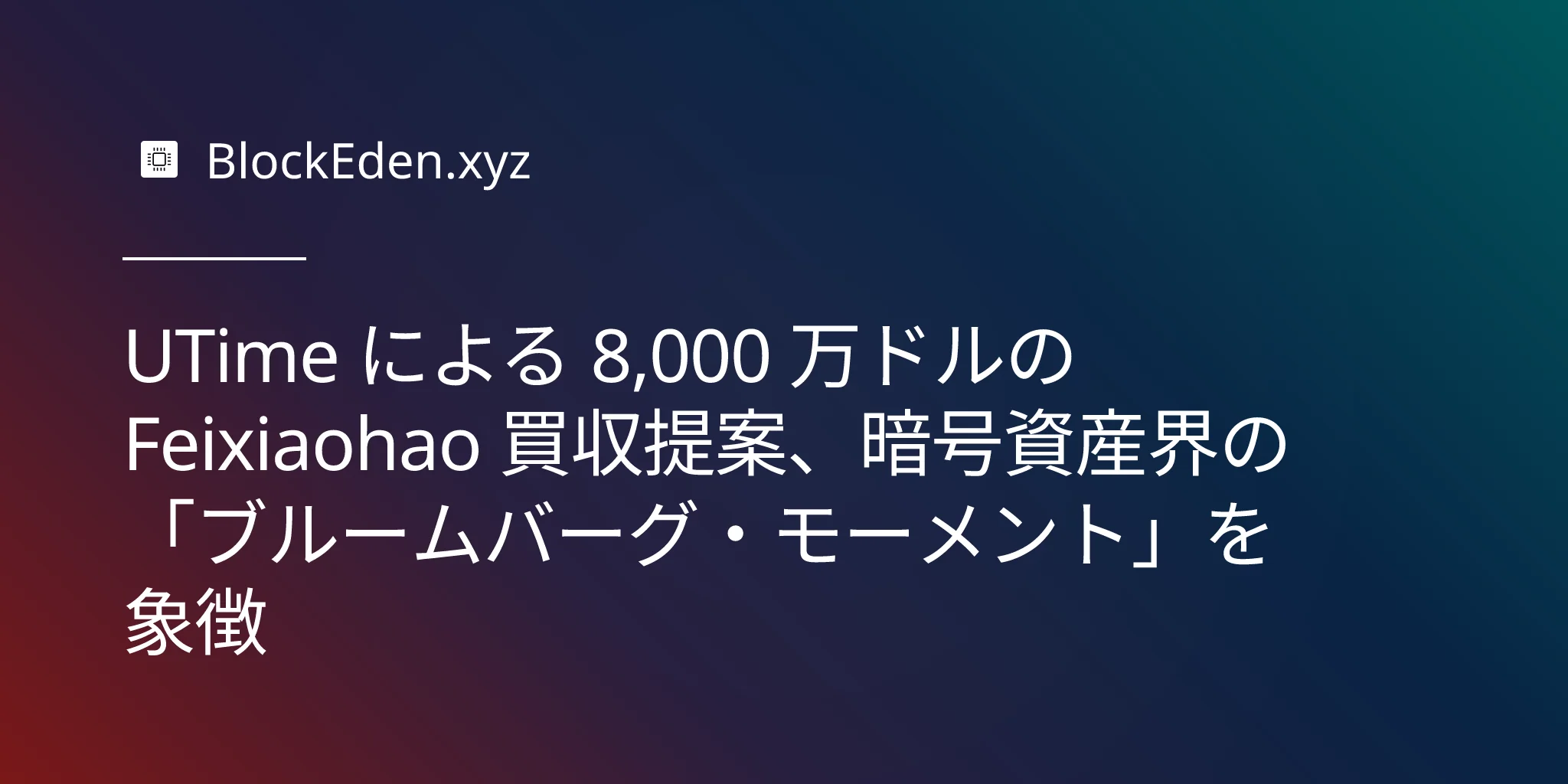 UTime による 8,000 万ドルの Feixiaohao 買収提案、暗号資産界の「ブルームバーグ・モーメント」を象徴