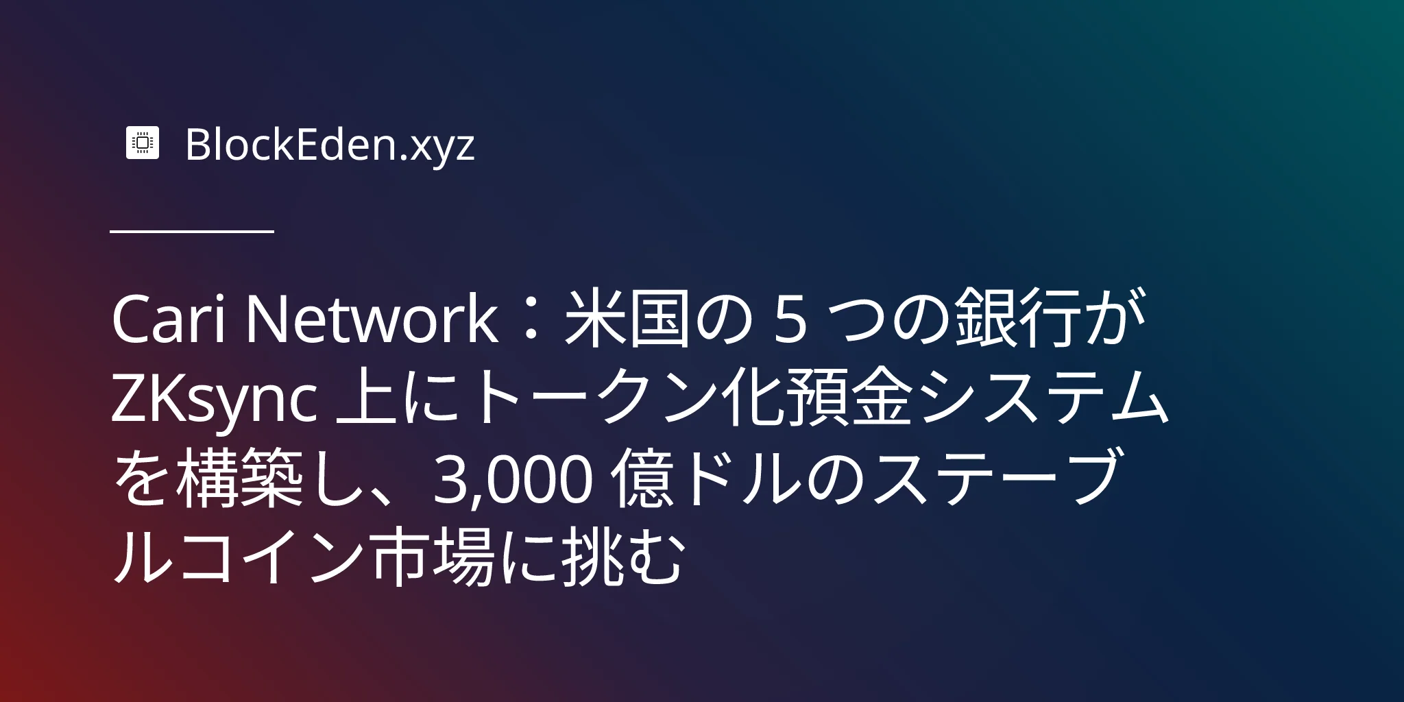 Cari Network:米国の 5 つの銀行が ZKsync 上にトークン化預金システムを構築し、3,000 億ドルのステーブルコイン市場に挑む
