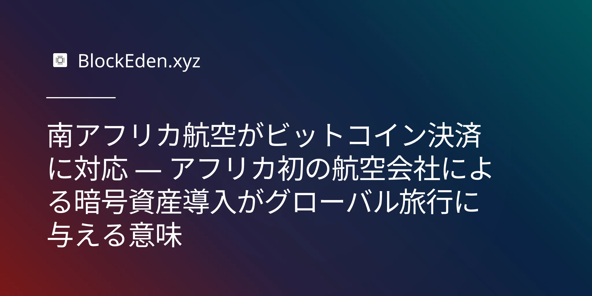 南アフリカ航空がビットコイン決済に対応 — アフリカ初の航空会社による暗号資産導入がグローバル旅行に与える意味