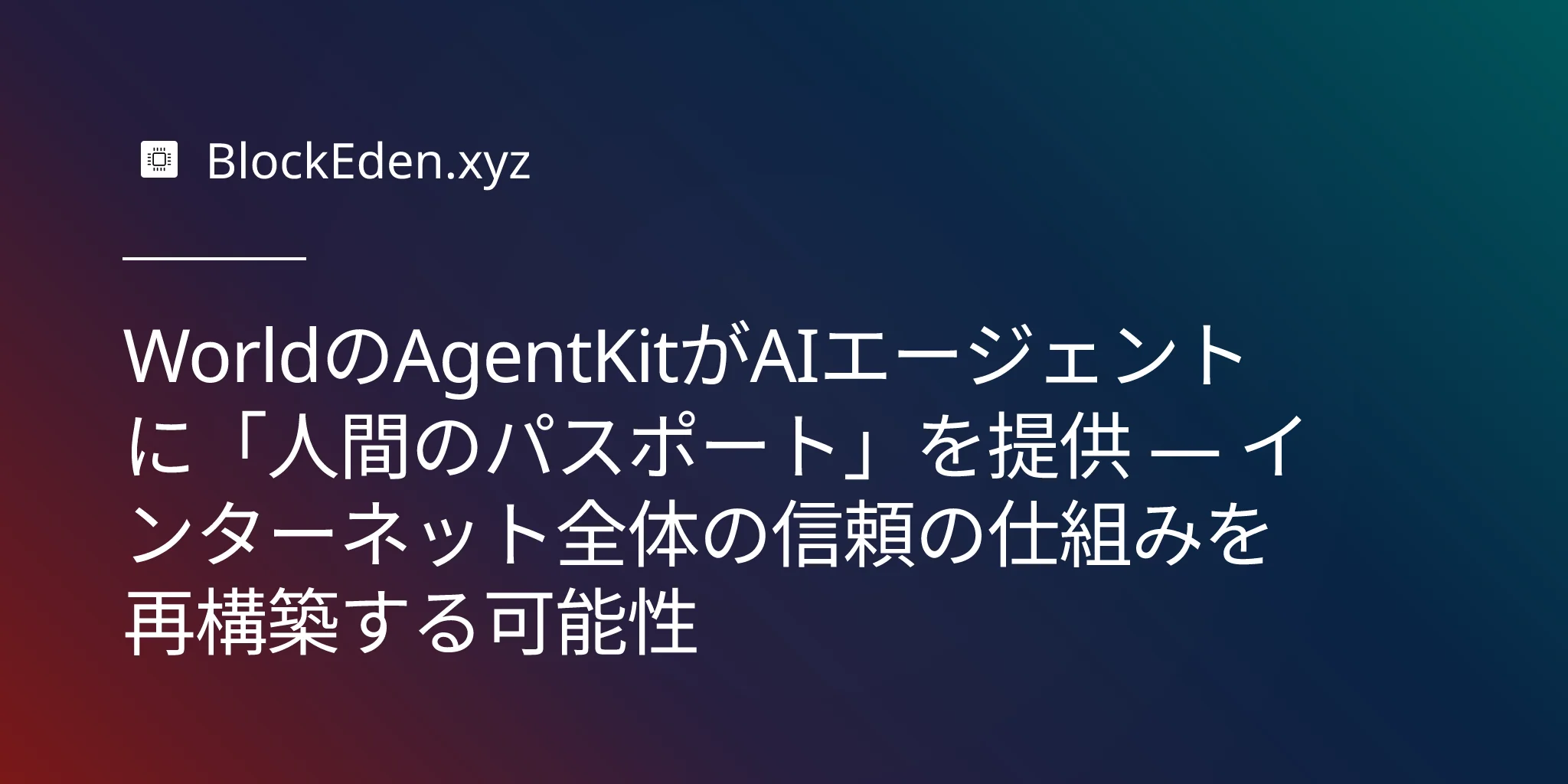 WorldのAgentKitがAIエージェントに「人間のパスポート」を提供 — インターネット全体の信頼の仕組みを再構築する可能性