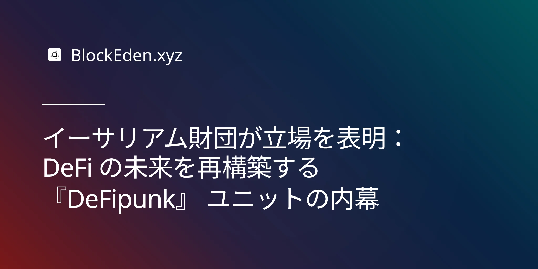 イーサリアム財団が立場を表明:DeFi の未来を再構築する 『DeFipunk』 ユニットの内幕