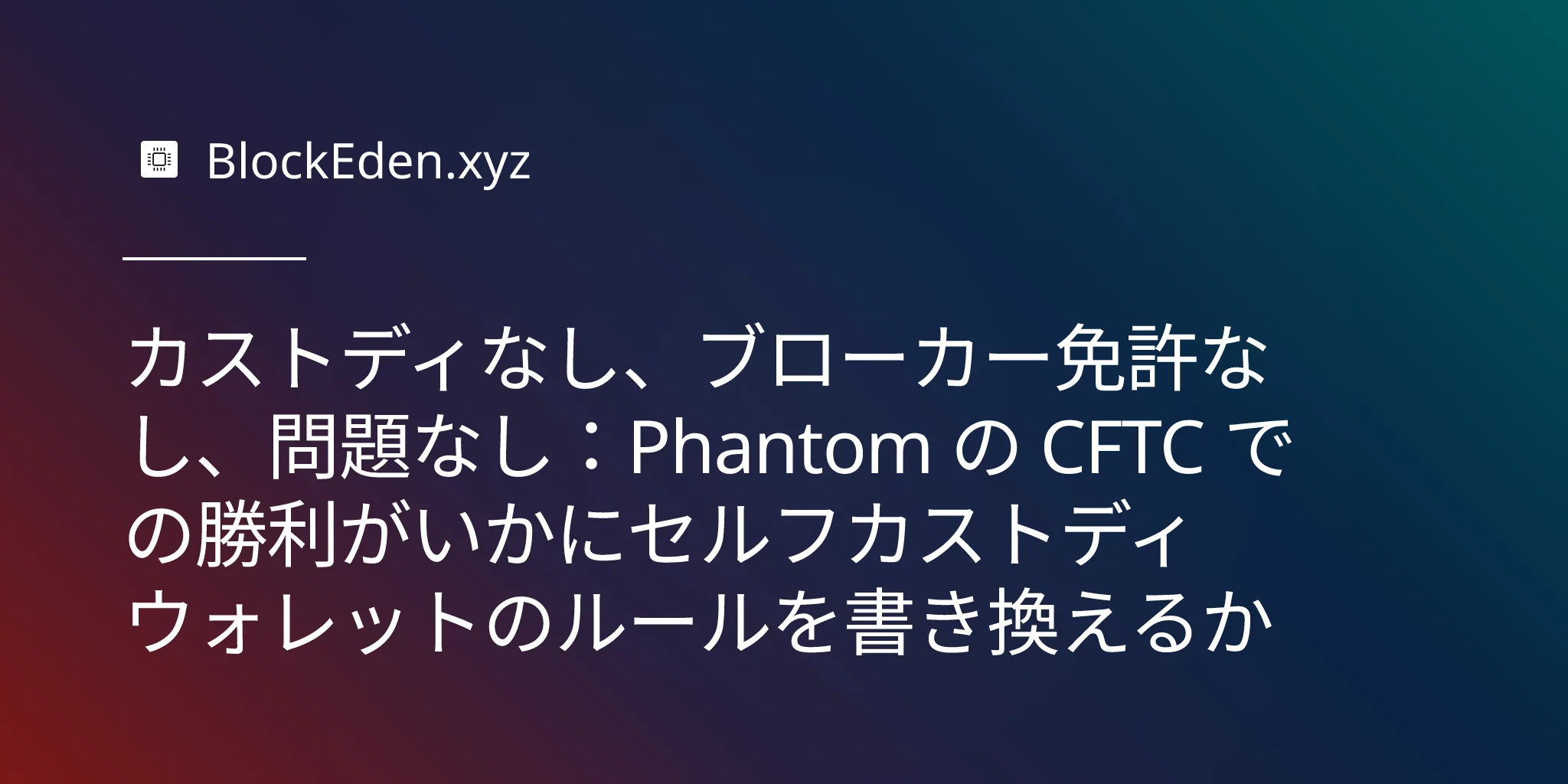 カストディなし、ブローカー免許なし、問題なし:Phantom の CFTC での勝利がいかにセルフカストディウォレットのルールを書き換えるか
