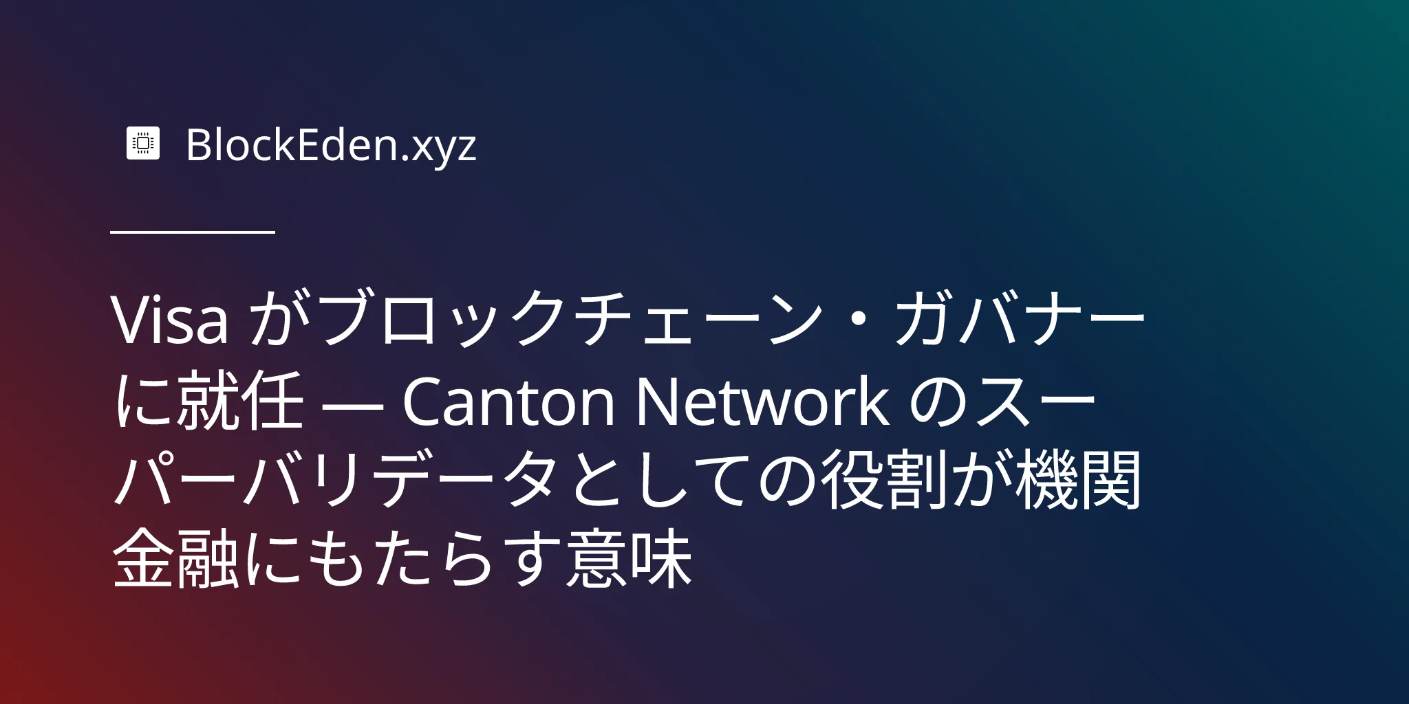 Visa がブロックチェーン・ガバナーに就任 — Canton Network のスーパーバリデータとしての役割が機関金融にもたらす意味