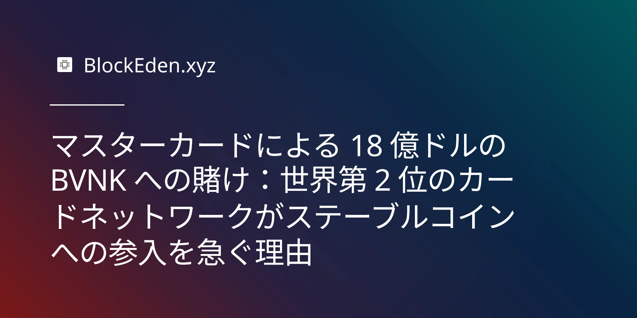 マスターカードによる 18 億ドルの BVNK への賭け:世界第 2 位のカードネットワークがステーブルコインへの参入を急ぐ理由