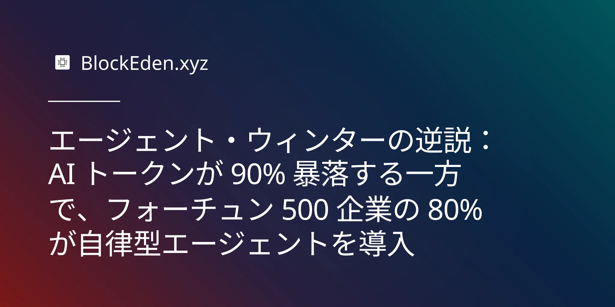 エージェント・ウィンターの逆説:AI トークンが 90% 暴落する一方で、フォーチュン 500 企業の 80% が自律型エージェントを導入