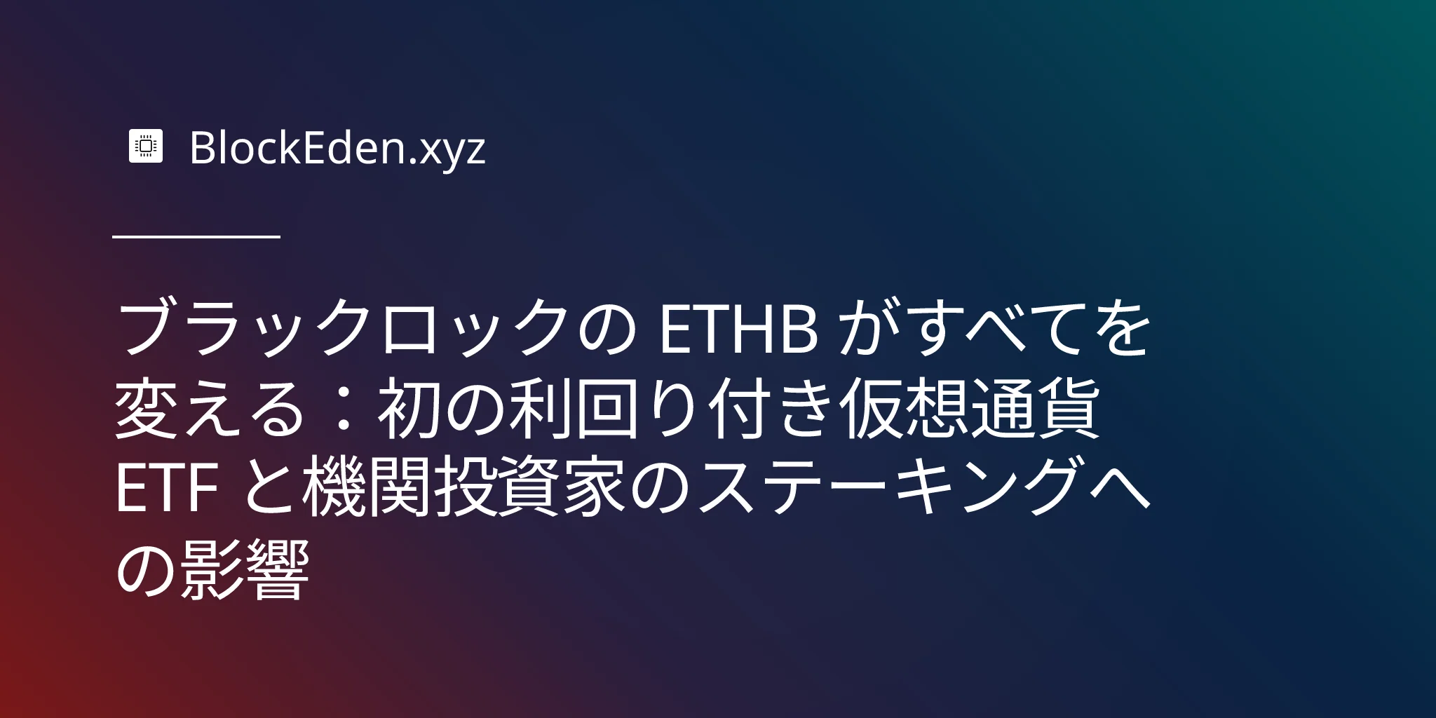 ブラックロックの ETHB がすべてを変える:初の利回り付き仮想通貨 ETF と機関投資家のステーキングへの影響